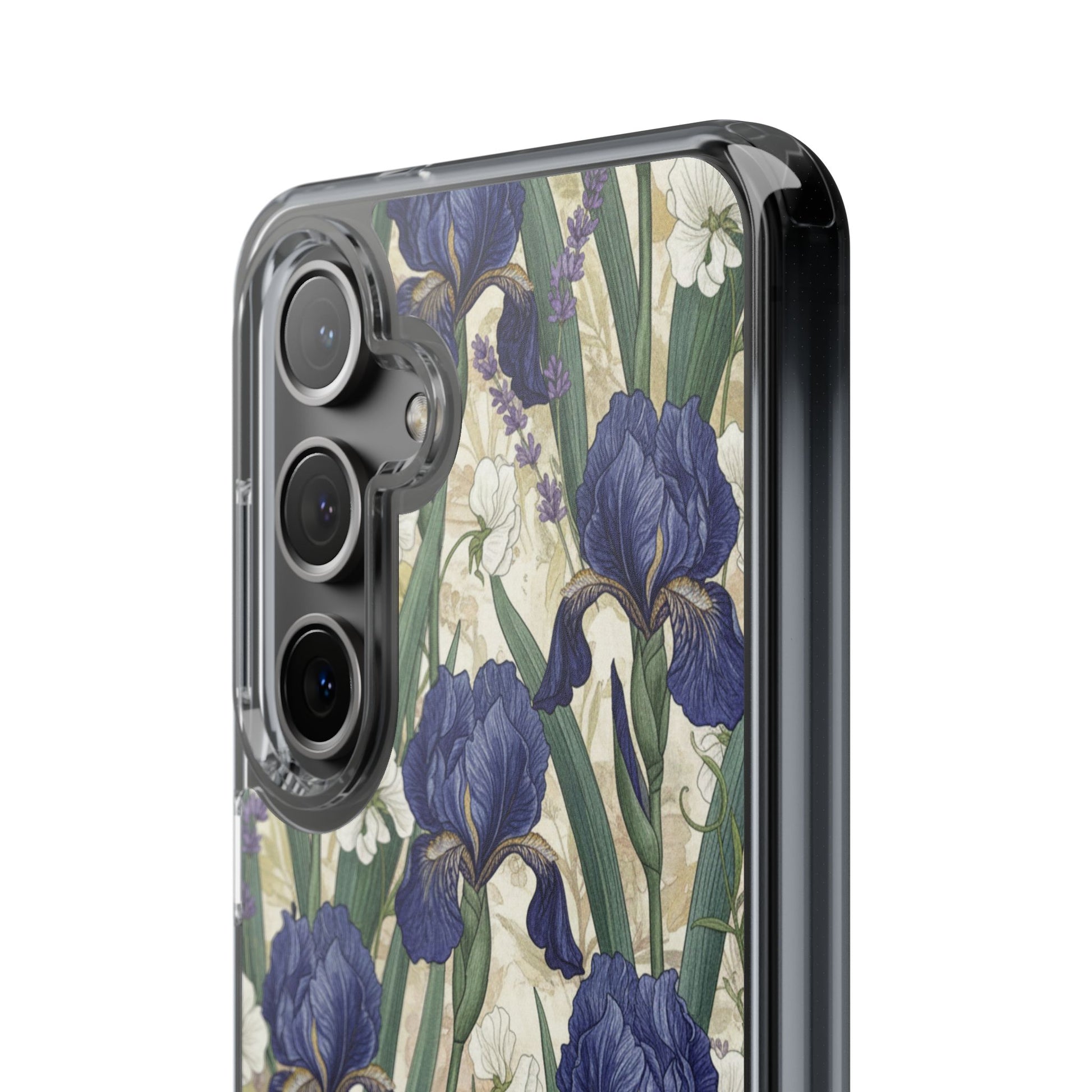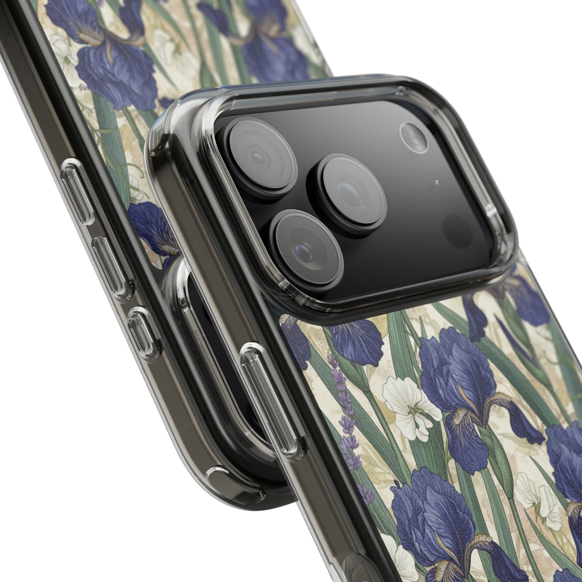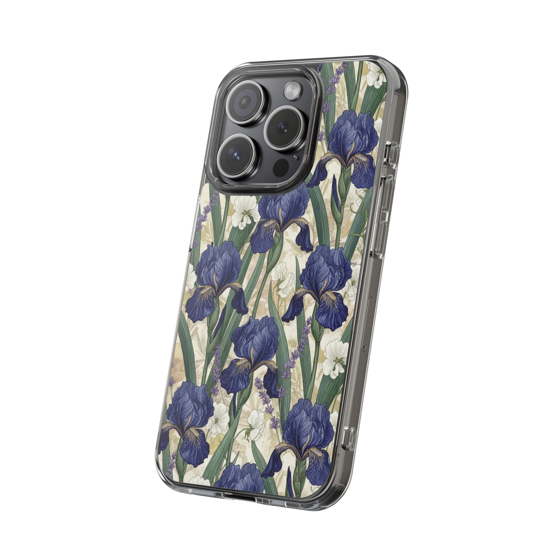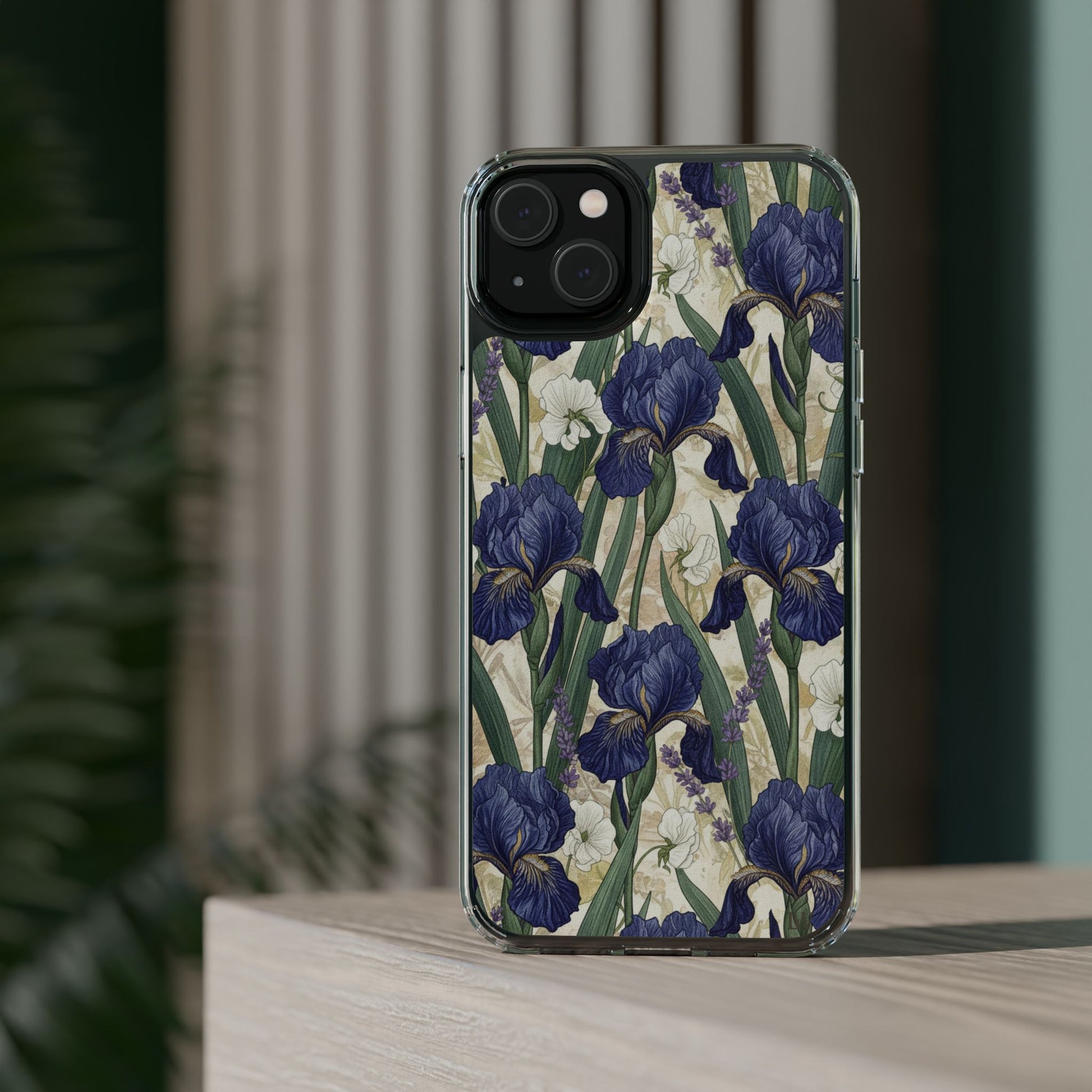 Step into a classic English garden with this elegant design. Featuring majestic blue irises, delicate white blossoms, and sprigs of fragrant lavender, this case captures the timeless beauty of a botanical illustration. Part of our Bloom Collection, it’s a sophisticated and artistic accessory that brings a touch of nature's grace to your everyday.