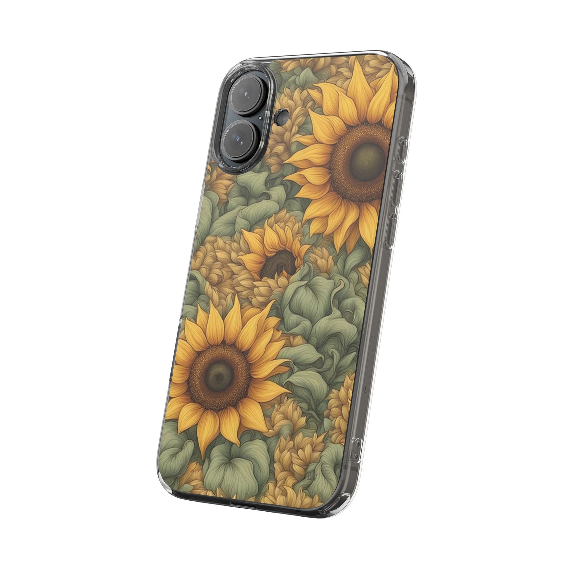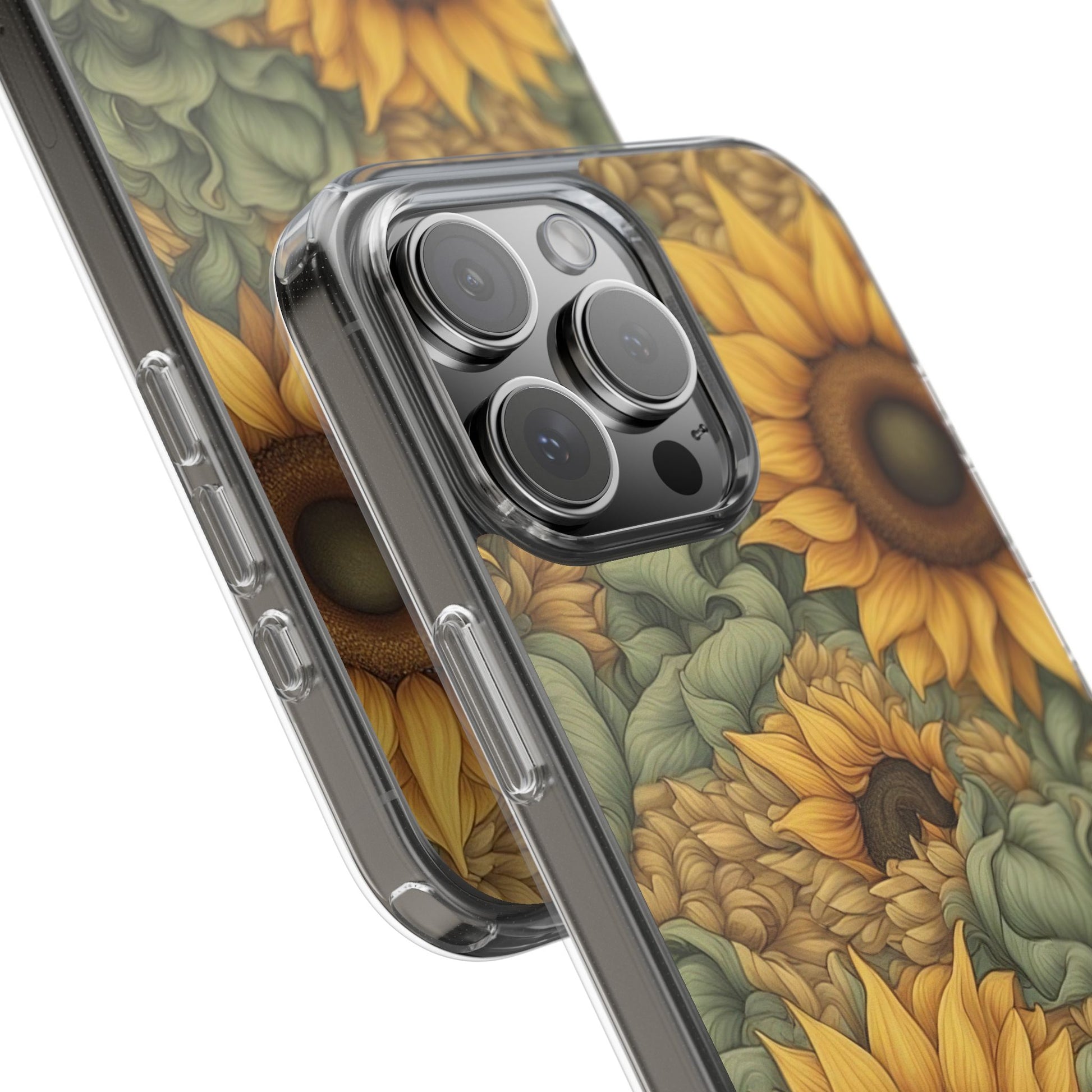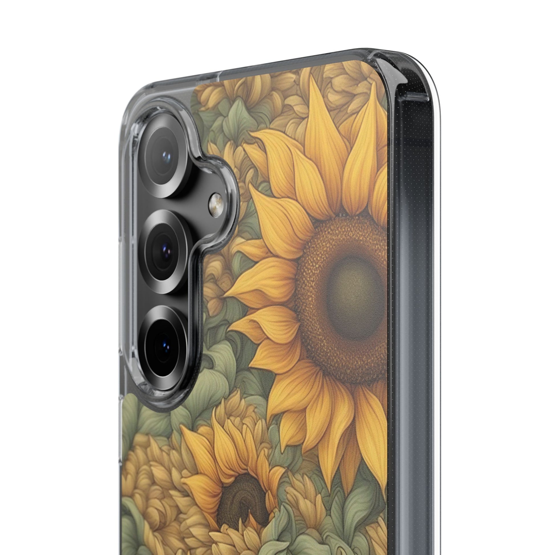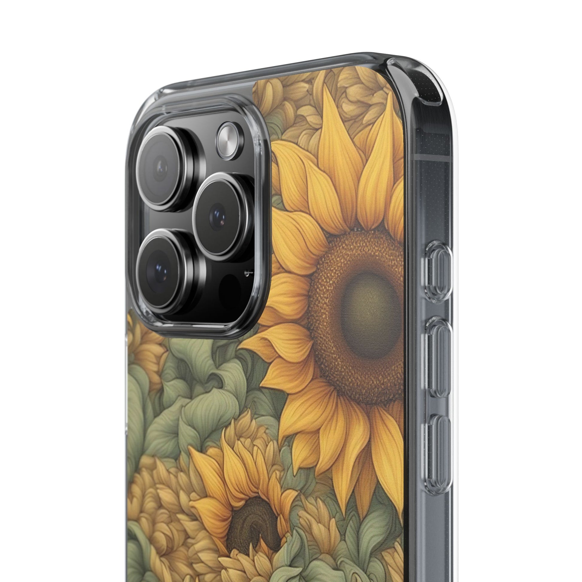 Bask in the perpetual warmth of a Golden Hour. This enchanting design features a lush field of sunflowers, their golden petals turned towards the sun, nestled among soft, sage-green leaves. Part of our Bloom Collection, this case captures the rich, optimistic energy of a late summer afternoon. It’s a timeless piece that brings a touch of rustic charm and abundant joy to your device.