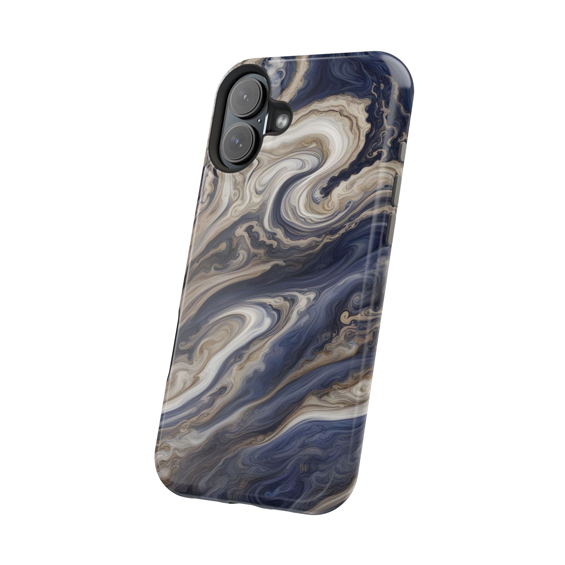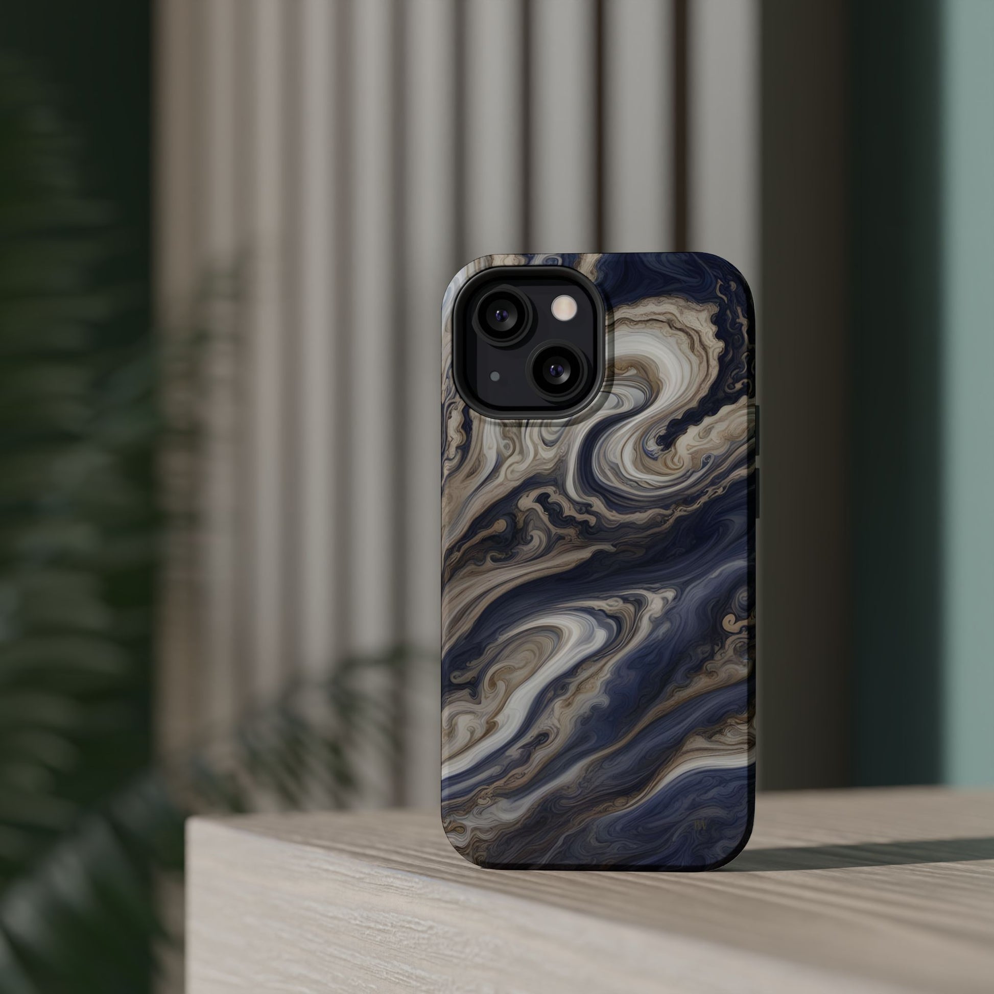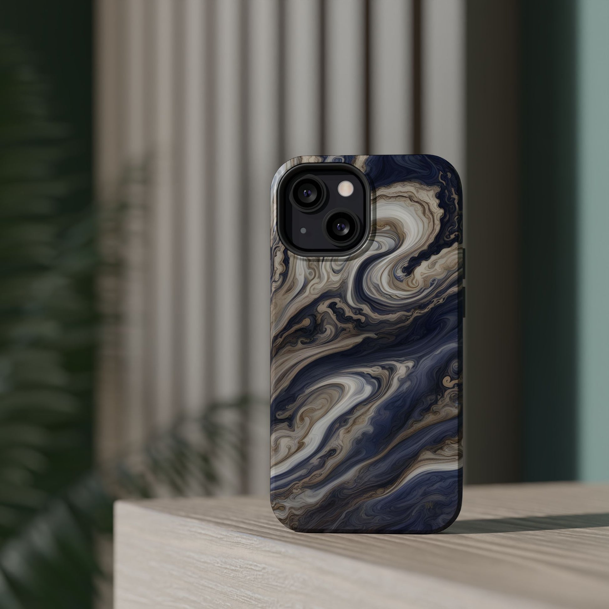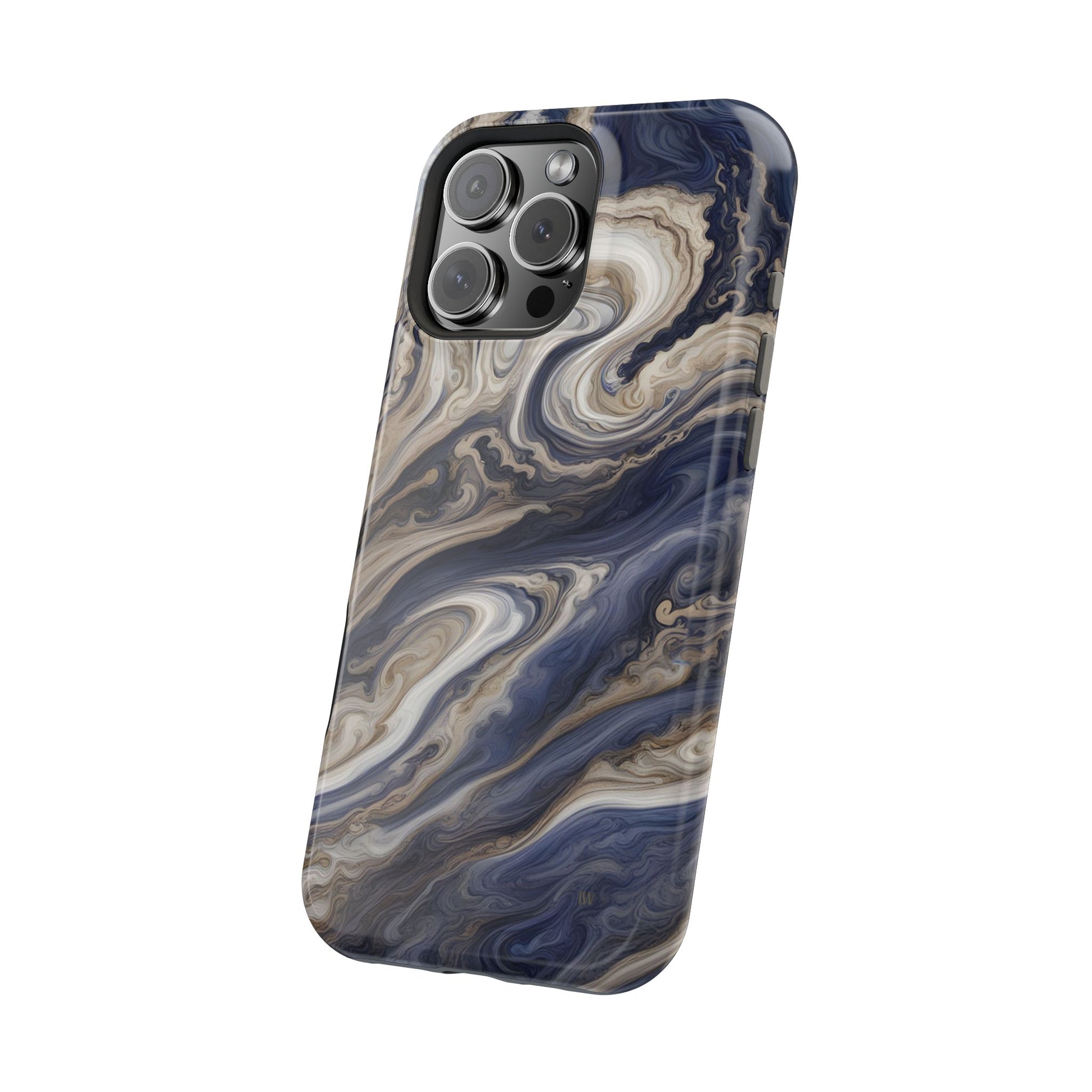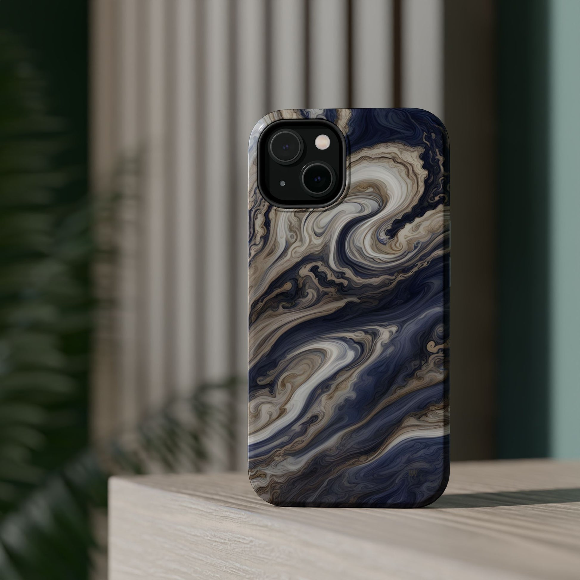 Get lost in the cosmic beauty of Midnight Dune our best one so far. This mesmerizing design combines deep, celestial blues with swirls of sandy beige and soft white, reminiscent of shifting desert dunes under a starry sky. Part of the Molten Marble collection, this case is an elegant and mysterious accessory that turns your phone into a work of art.