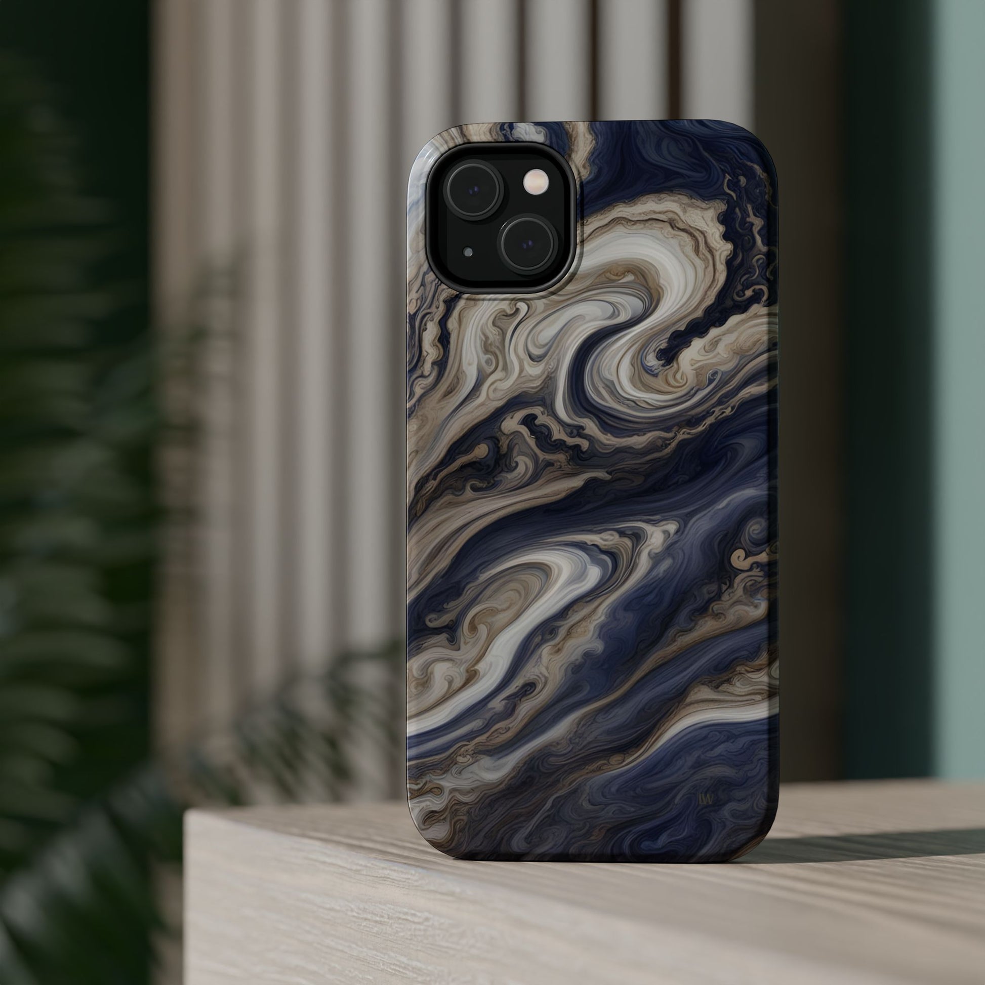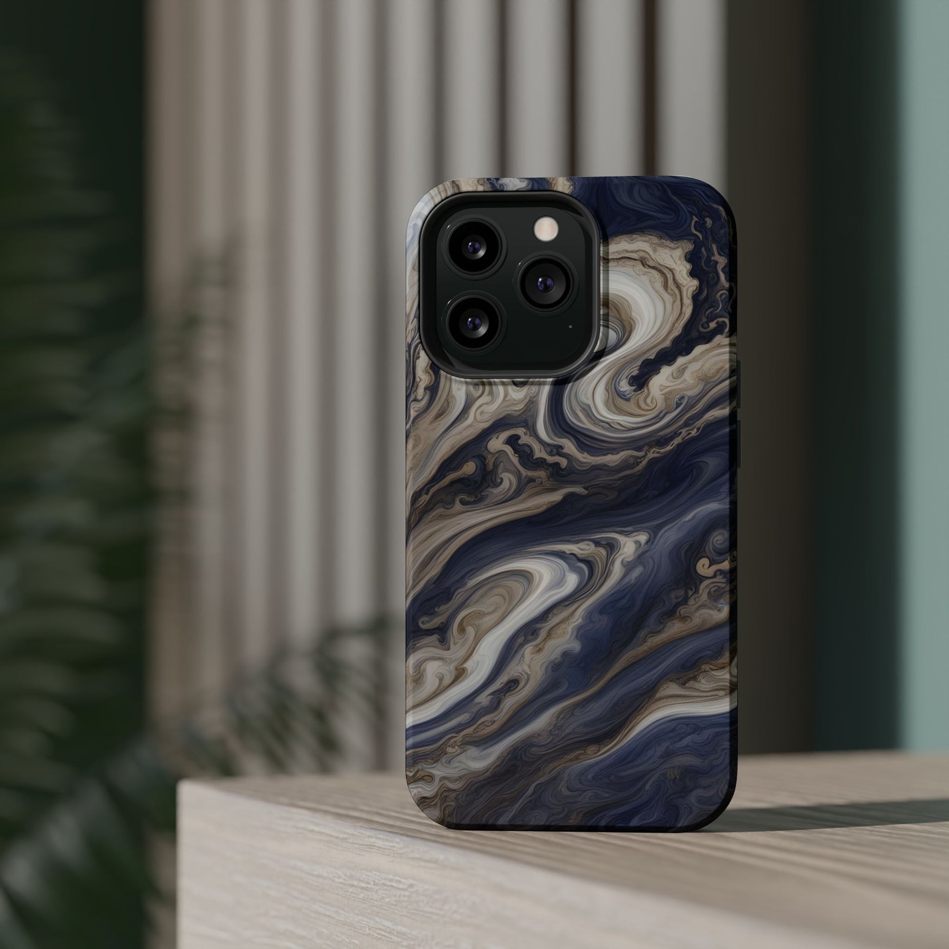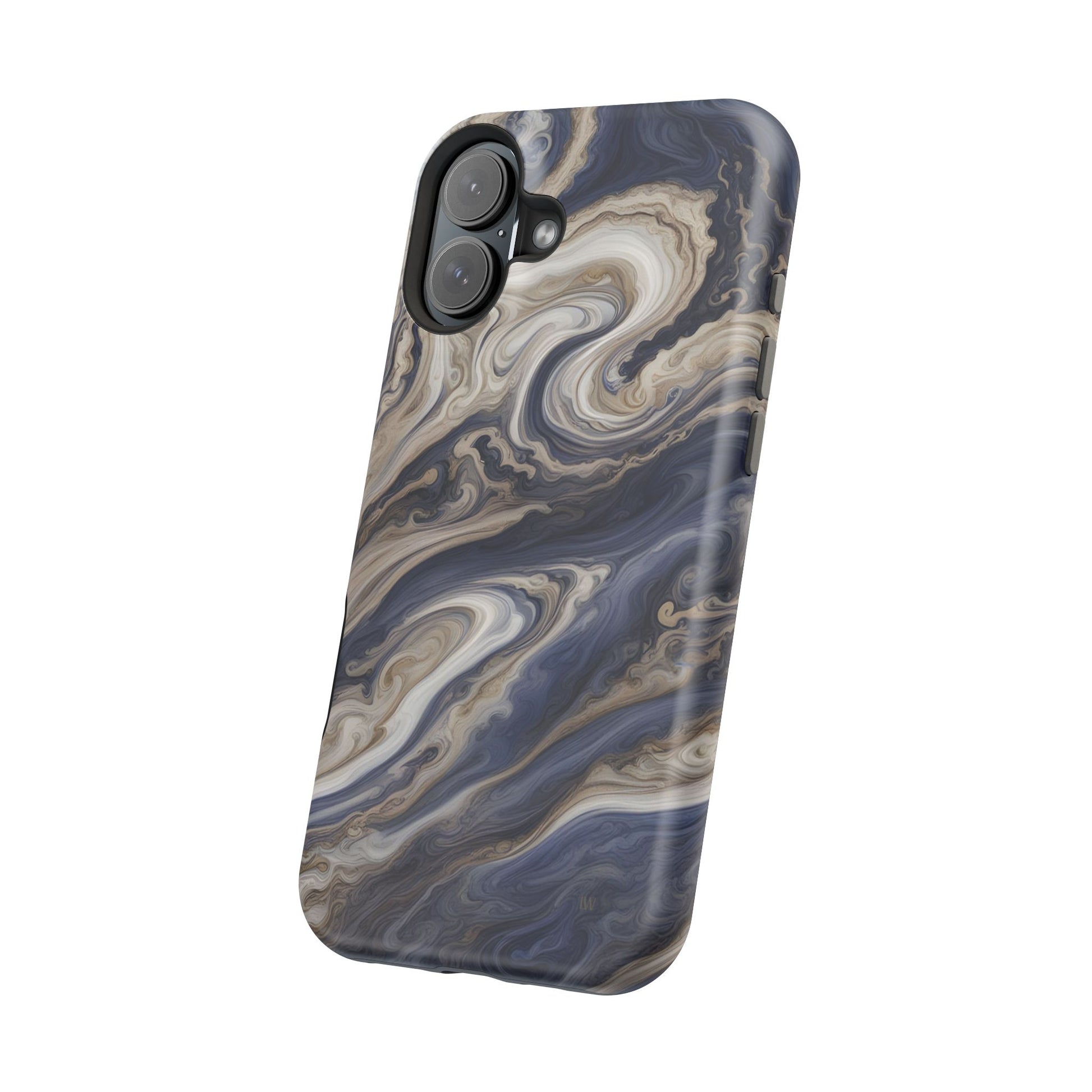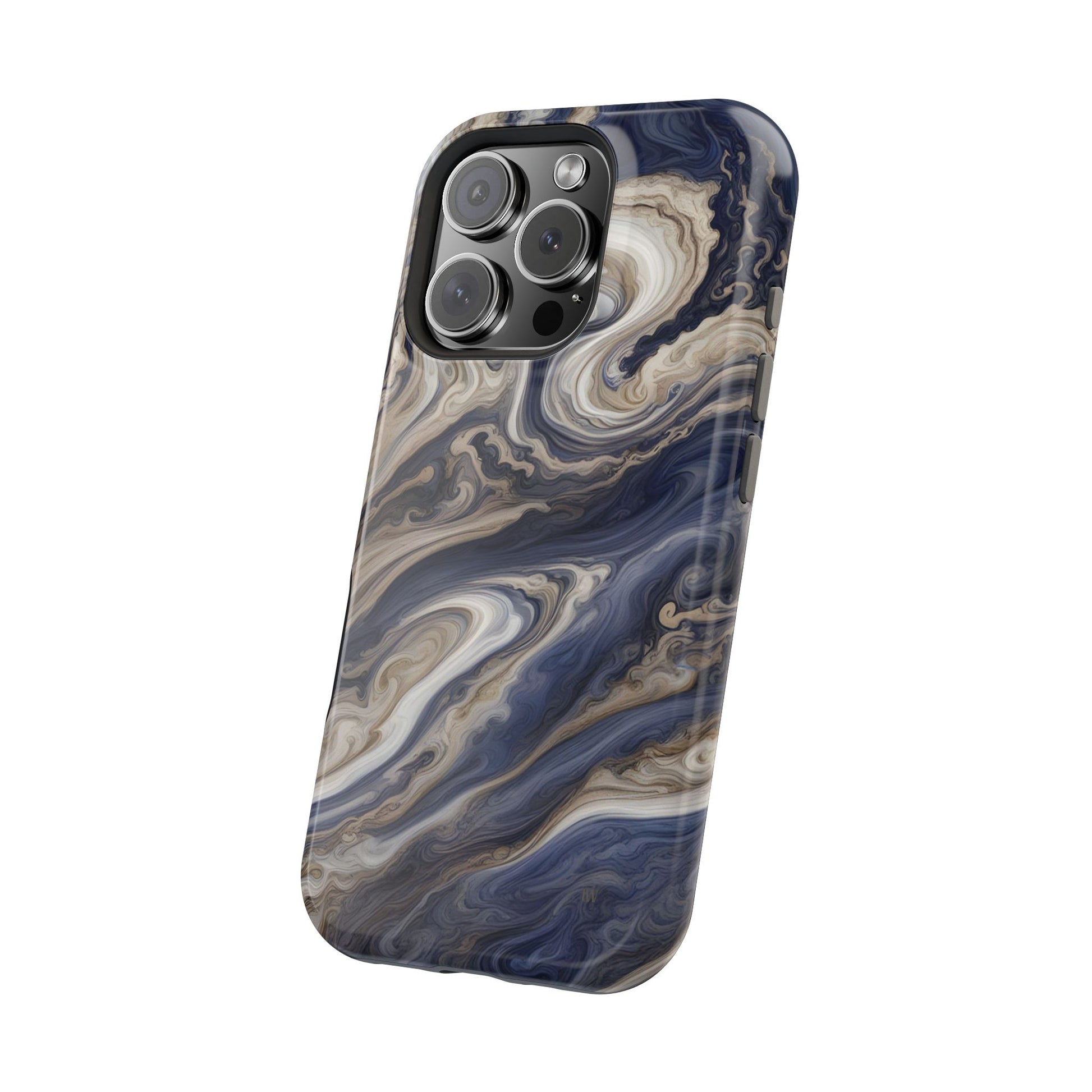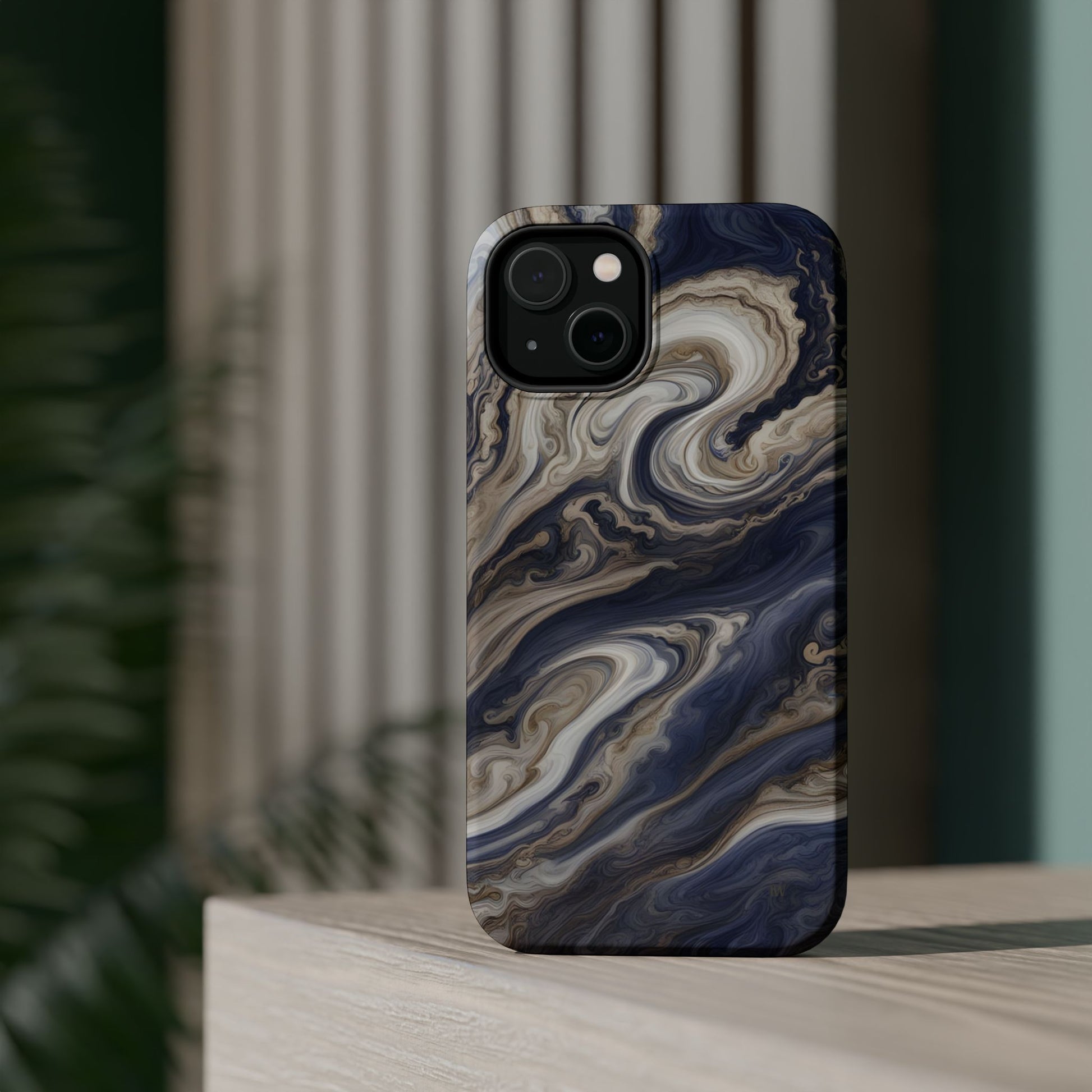Get lost in the cosmic beauty of Midnight Dune our best one so far. This mesmerizing design combines deep, celestial blues with swirls of sandy beige and soft white, reminiscent of shifting desert dunes under a starry sky. Part of the Molten Marble collection, this case is an elegant and mysterious accessory that turns your phone into a work of art.