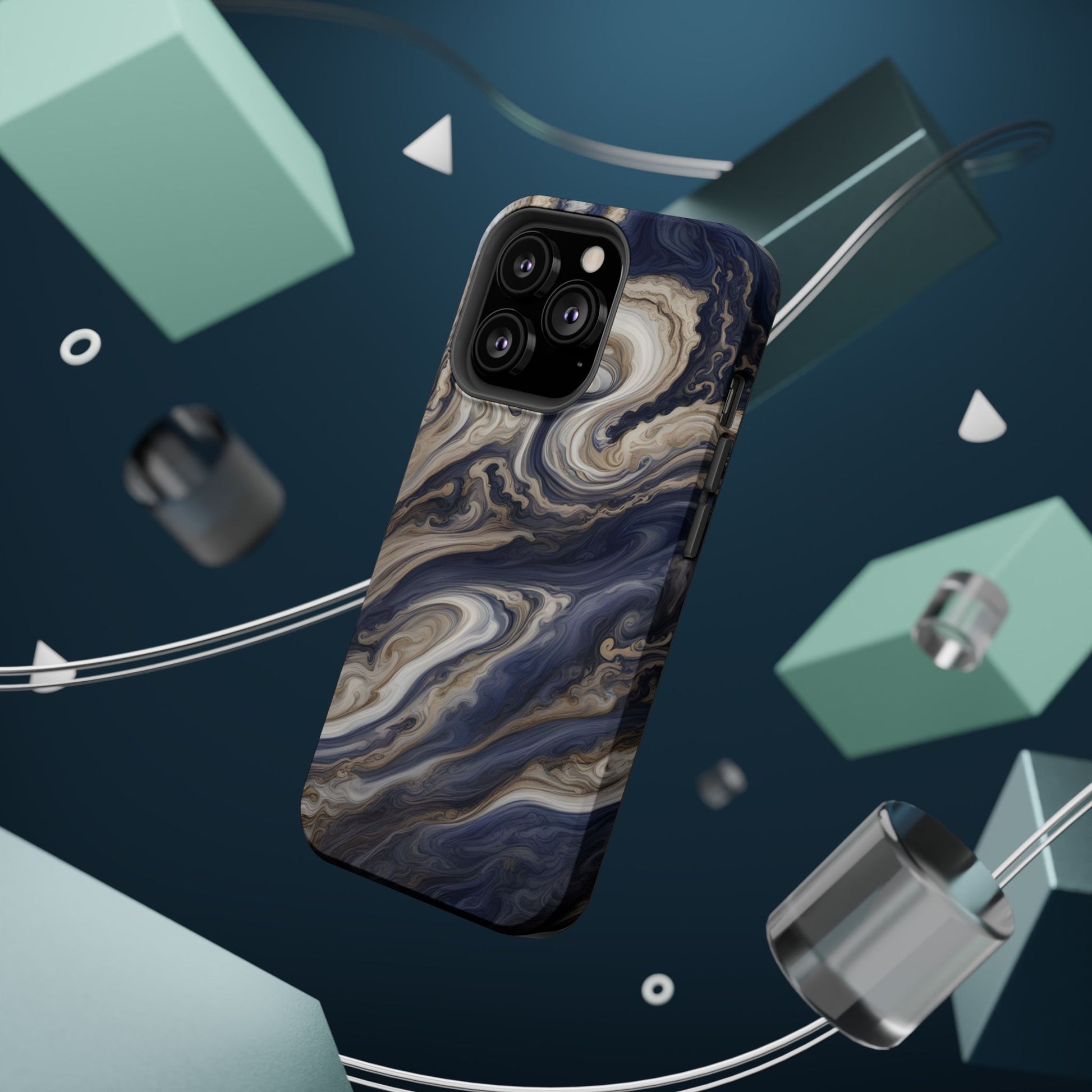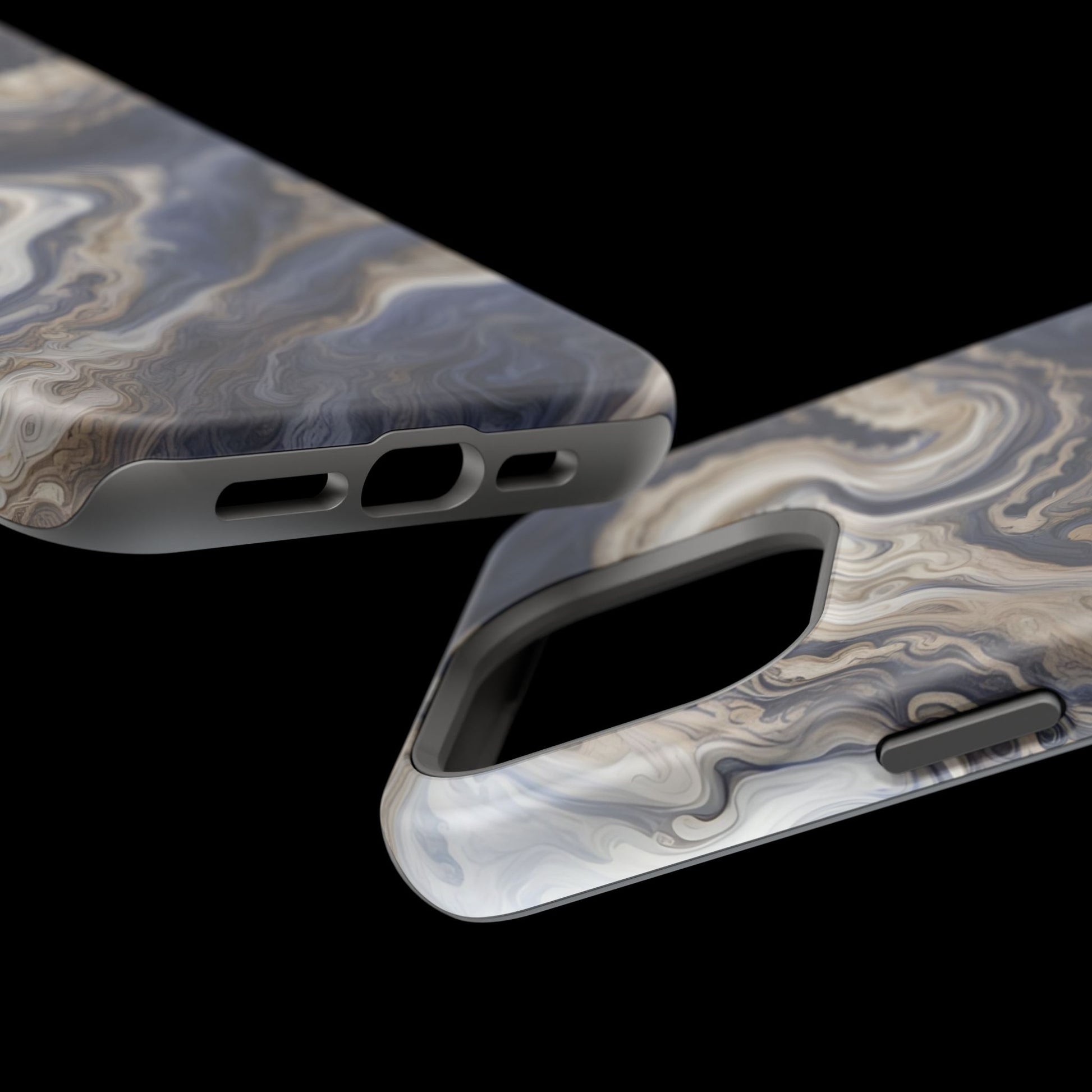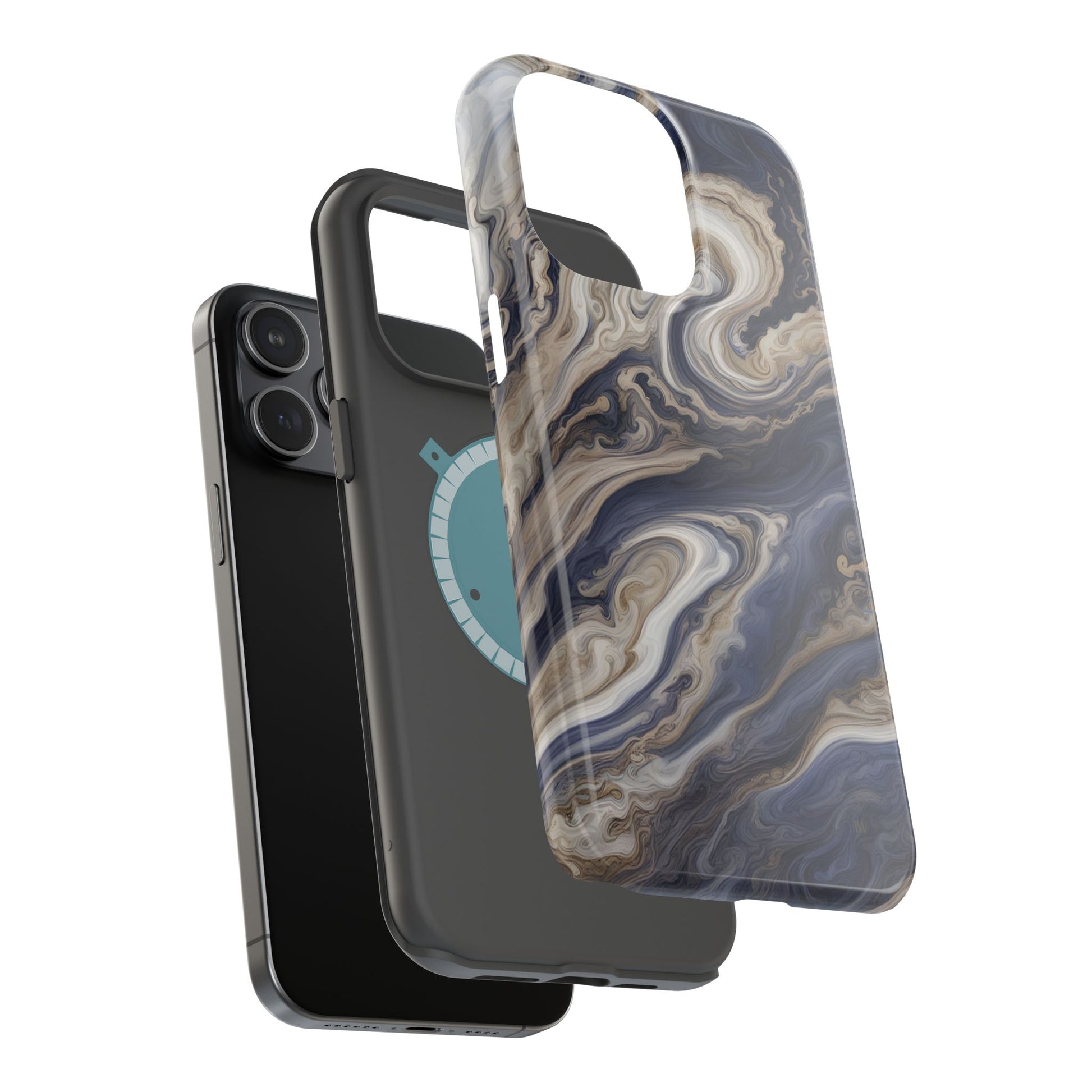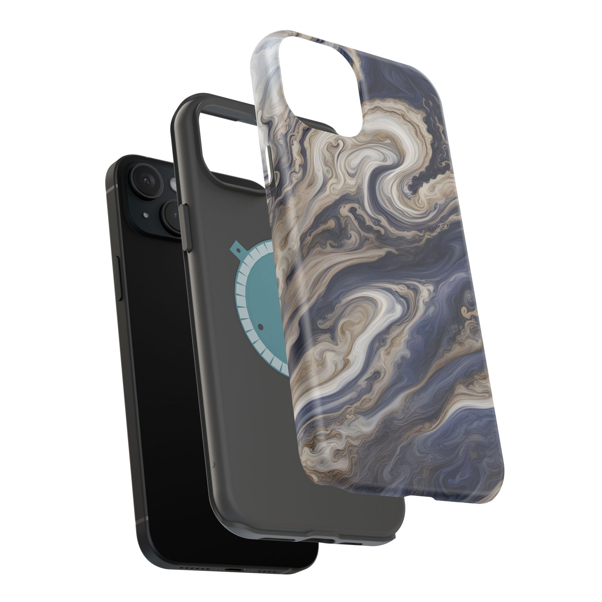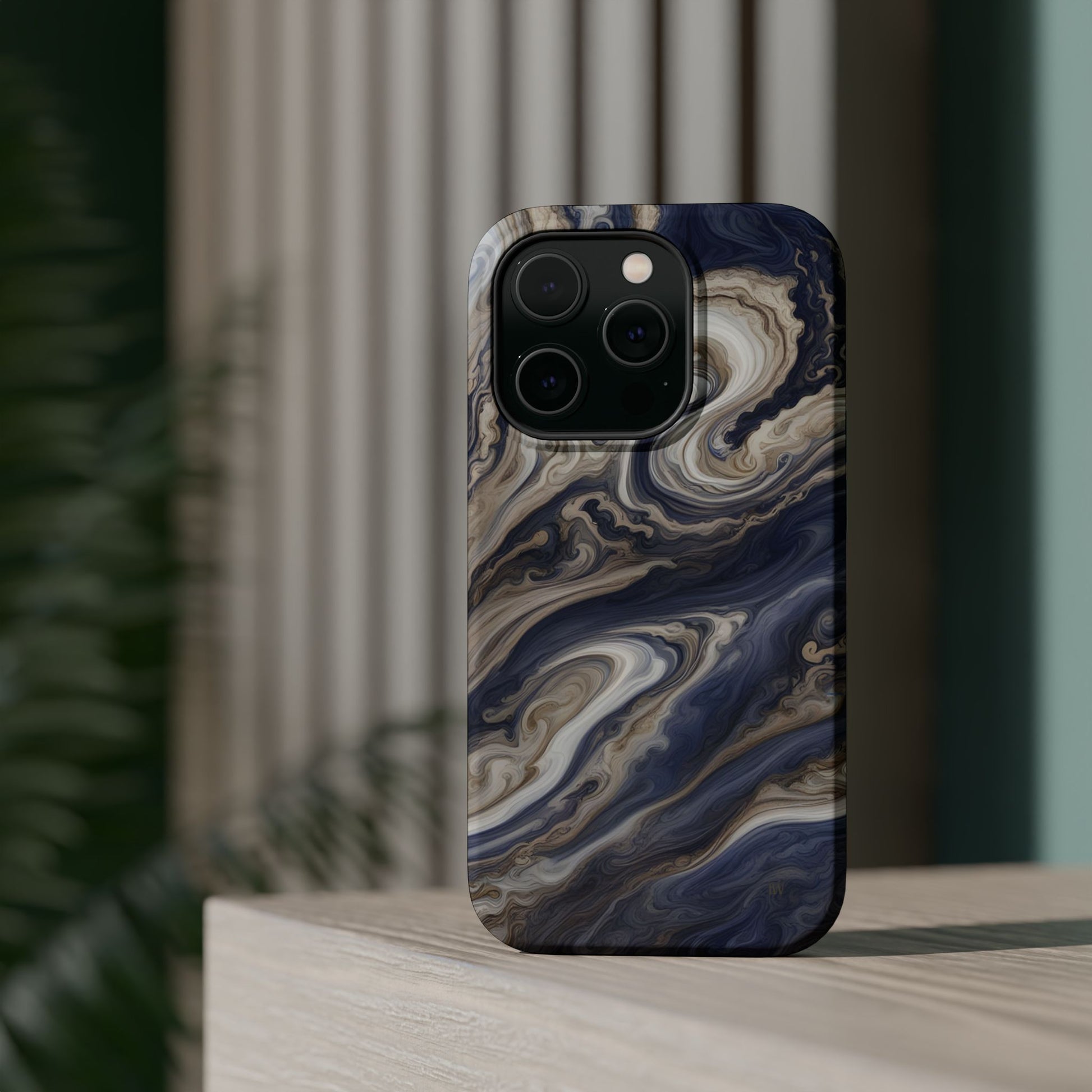Get lost in the cosmic beauty of Midnight Dune our best one so far. This mesmerizing design combines deep, celestial blues with swirls of sandy beige and soft white, reminiscent of shifting desert dunes under a starry sky. Part of the Molten Marble collection, this case is an elegant and mysterious accessory that turns your phone into a work of art.