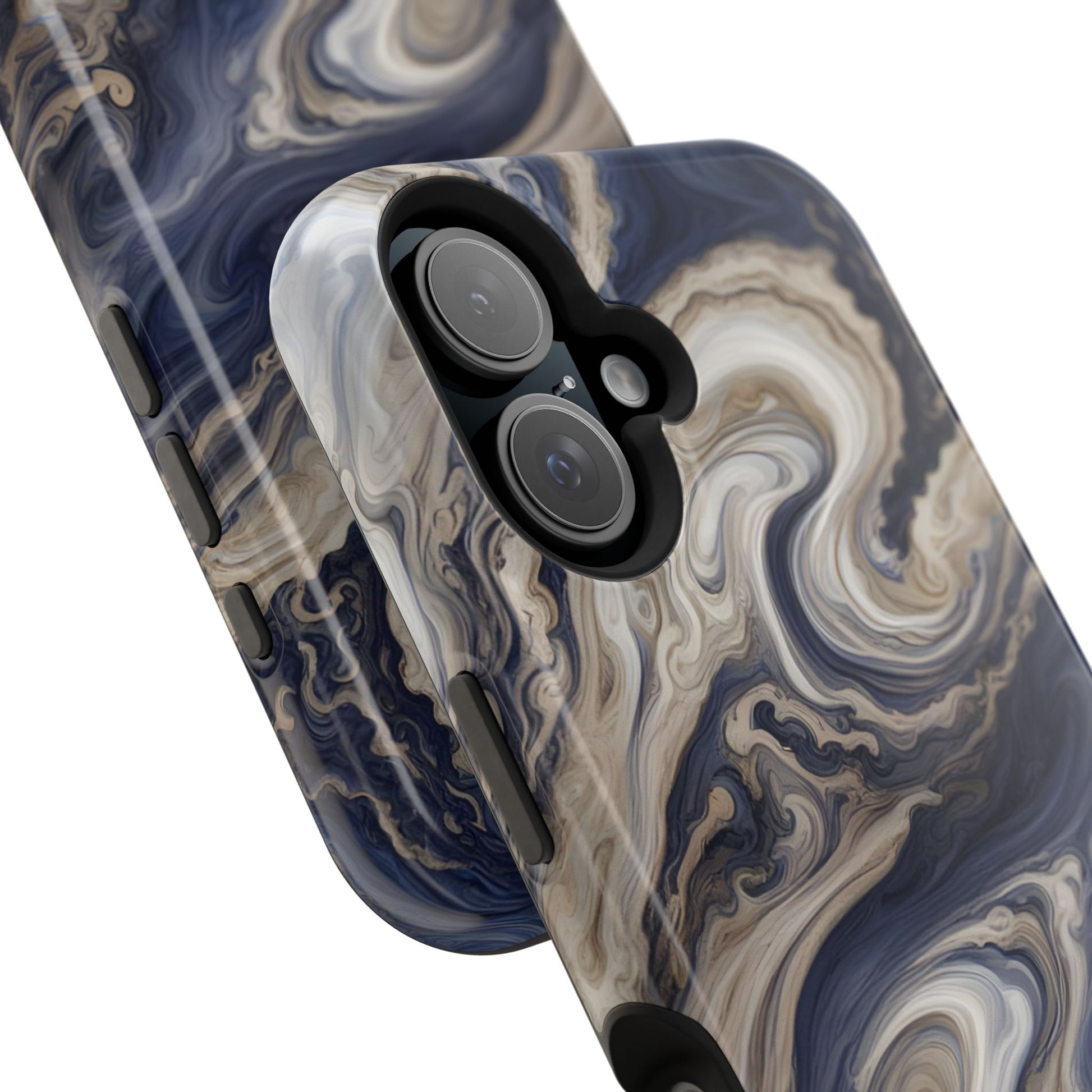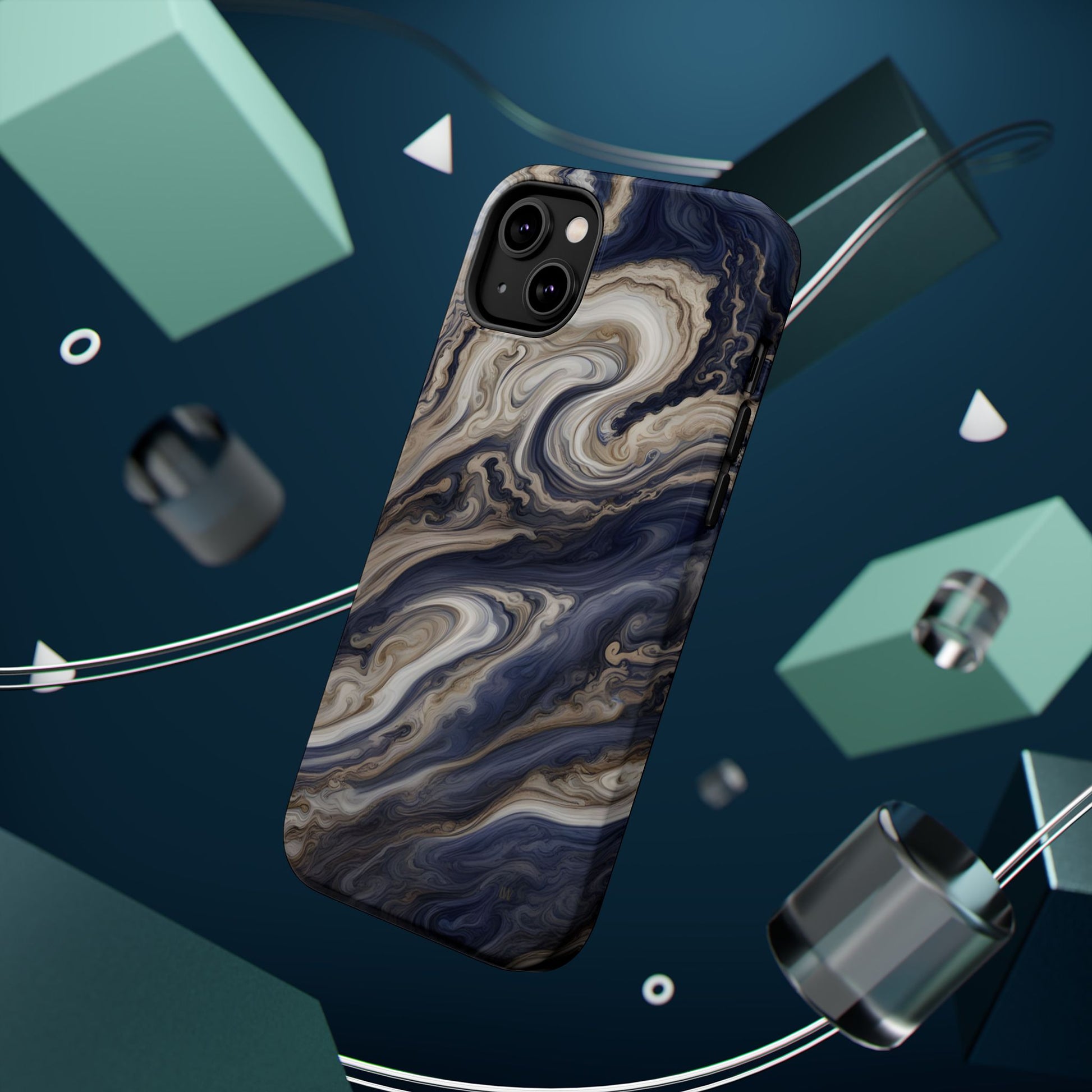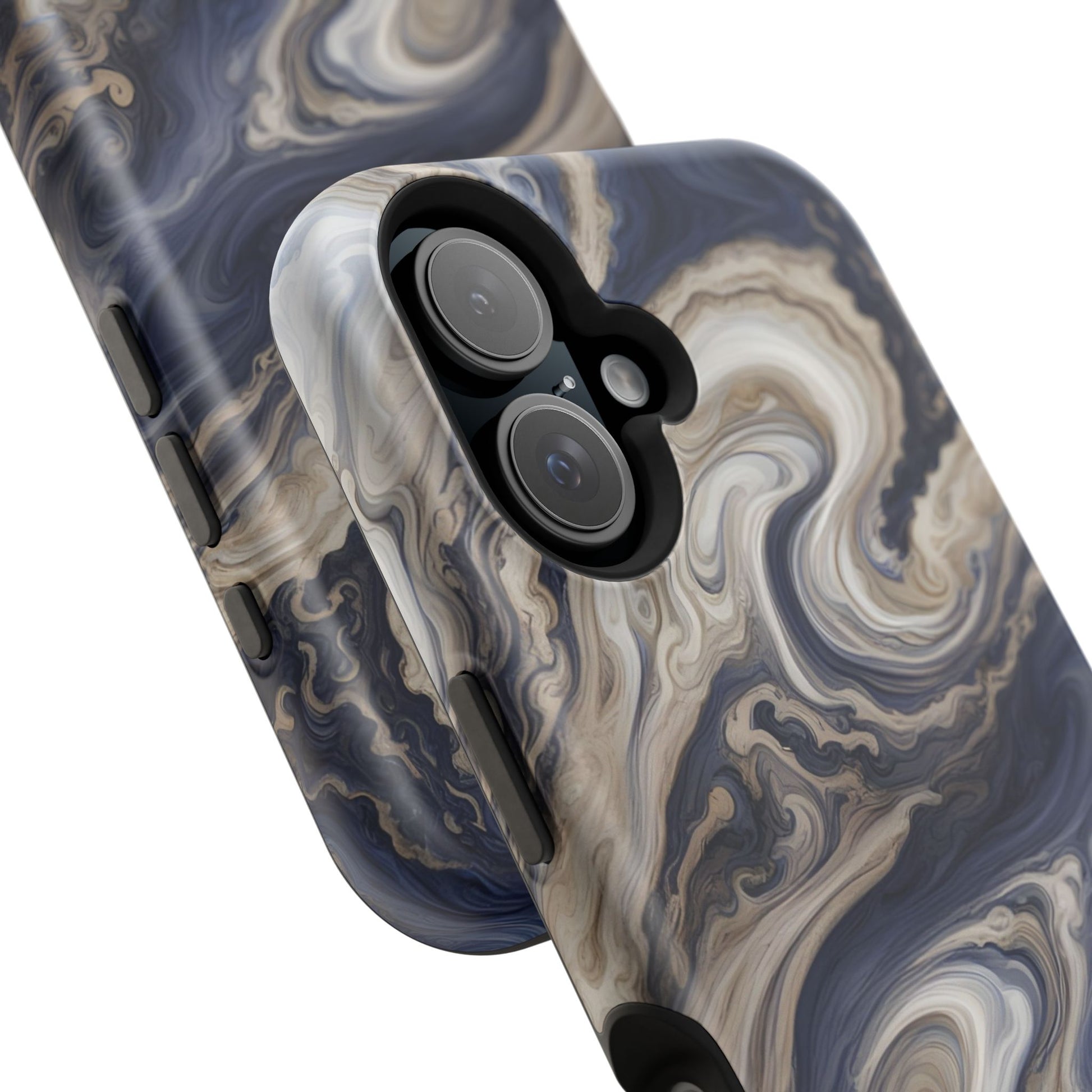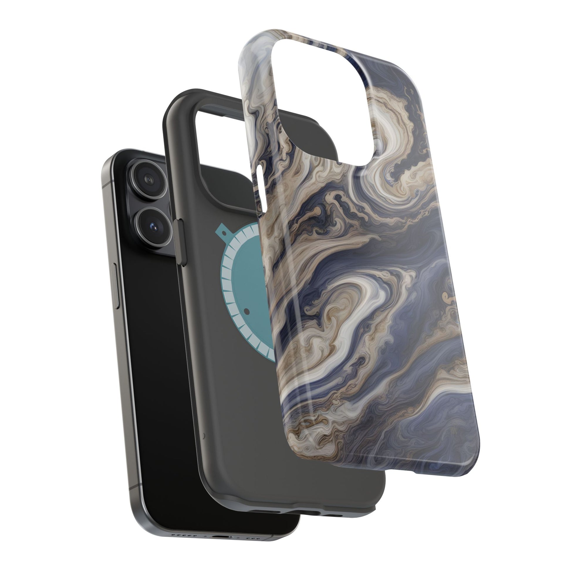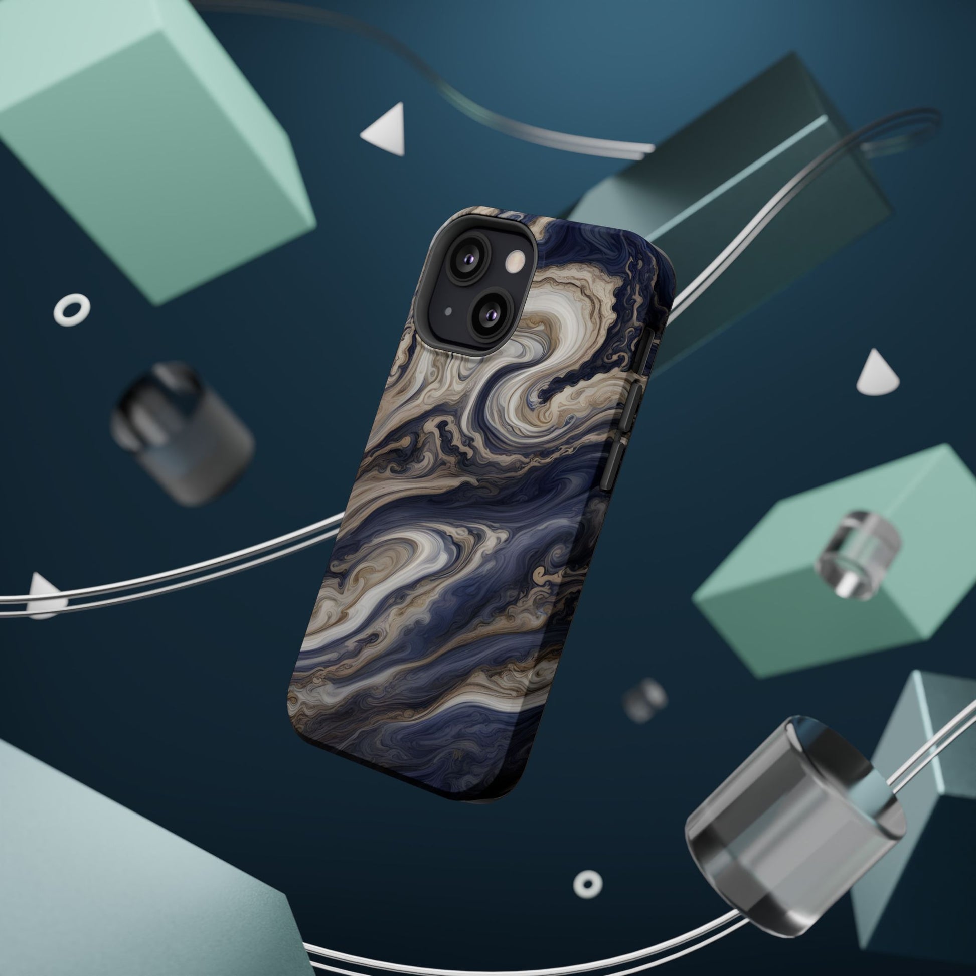 Get lost in the cosmic beauty of Midnight Dune our best one so far. This mesmerizing design combines deep, celestial blues with swirls of sandy beige and soft white, reminiscent of shifting desert dunes under a starry sky. Part of the Molten Marble collection, this case is an elegant and mysterious accessory that turns your phone into a work of art.