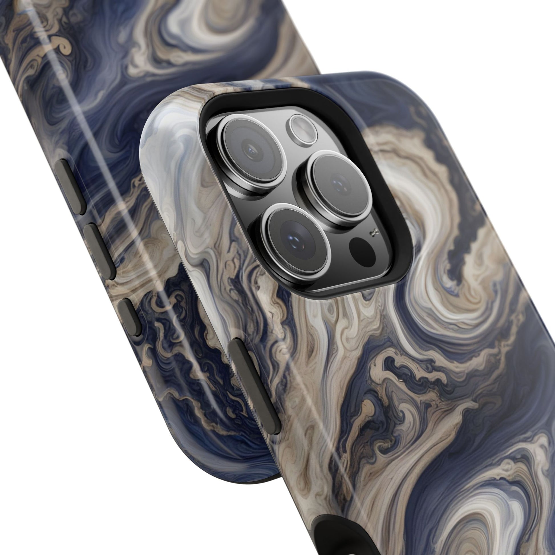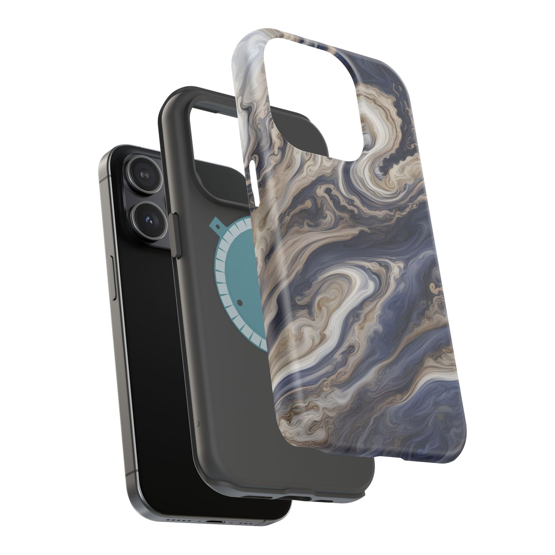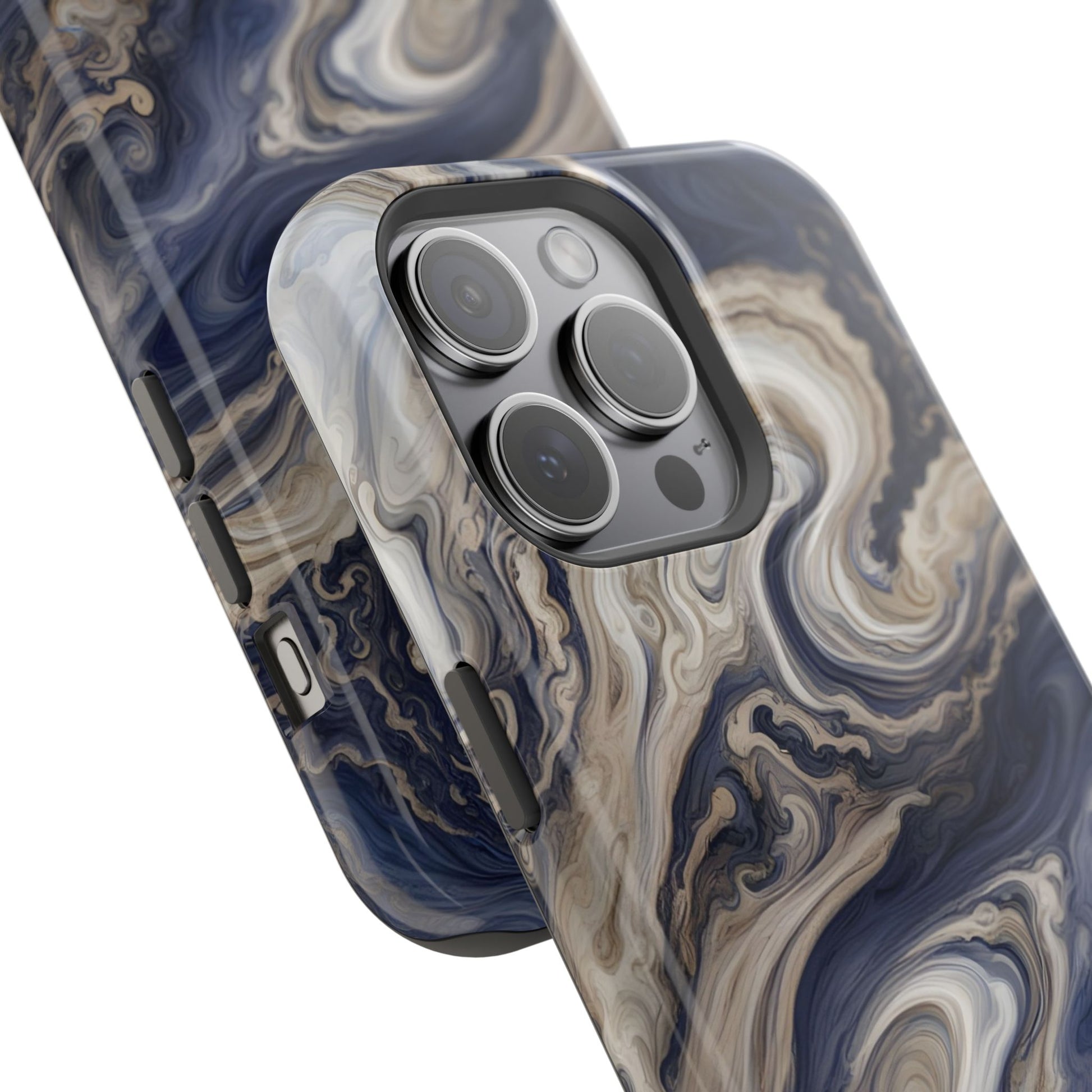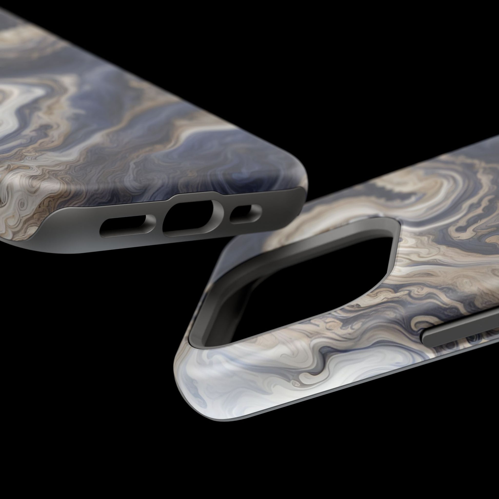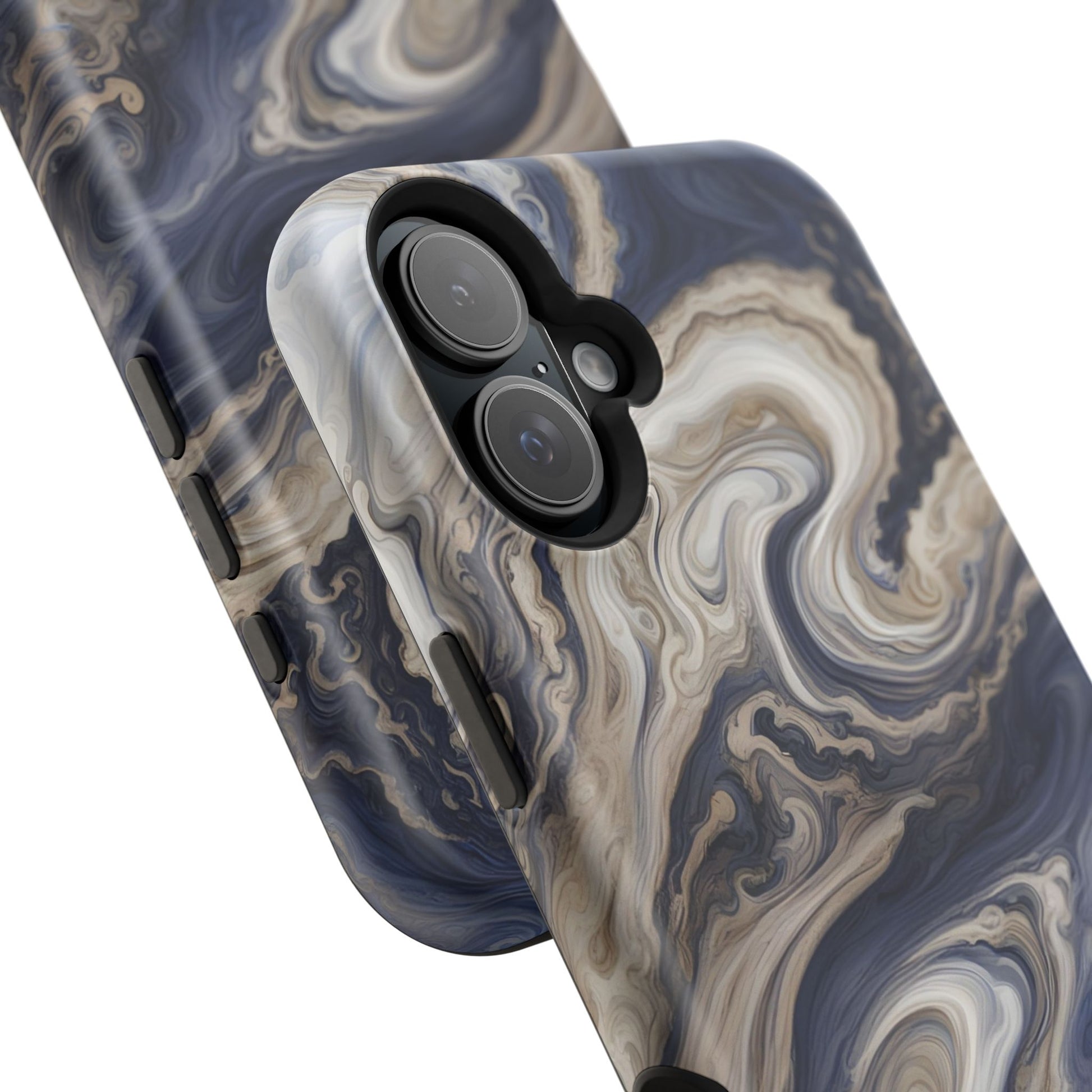 Get lost in the cosmic beauty of Midnight Dune our best one so far. This mesmerizing design combines deep, celestial blues with swirls of sandy beige and soft white, reminiscent of shifting desert dunes under a starry sky. Part of the Molten Marble collection, this case is an elegant and mysterious accessory that turns your phone into a work of art.