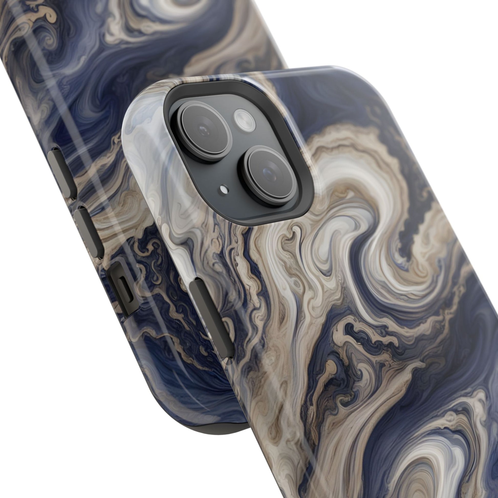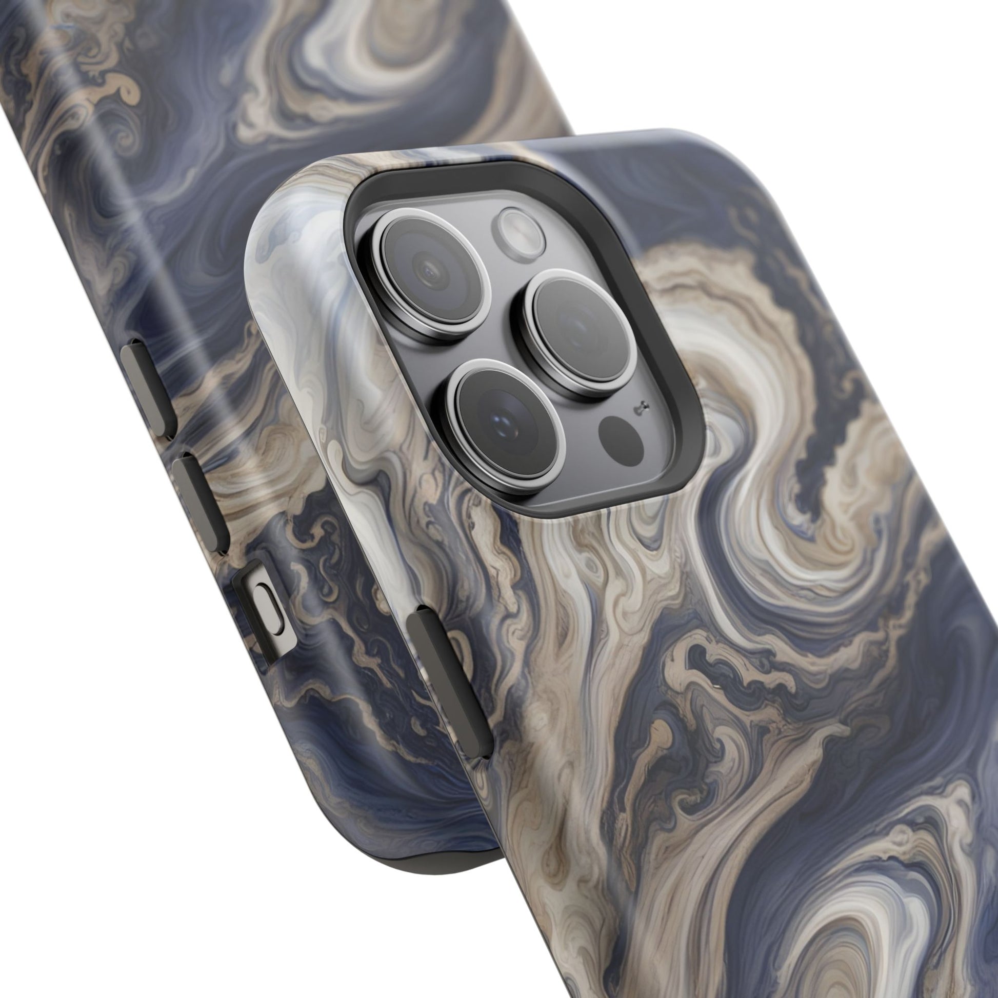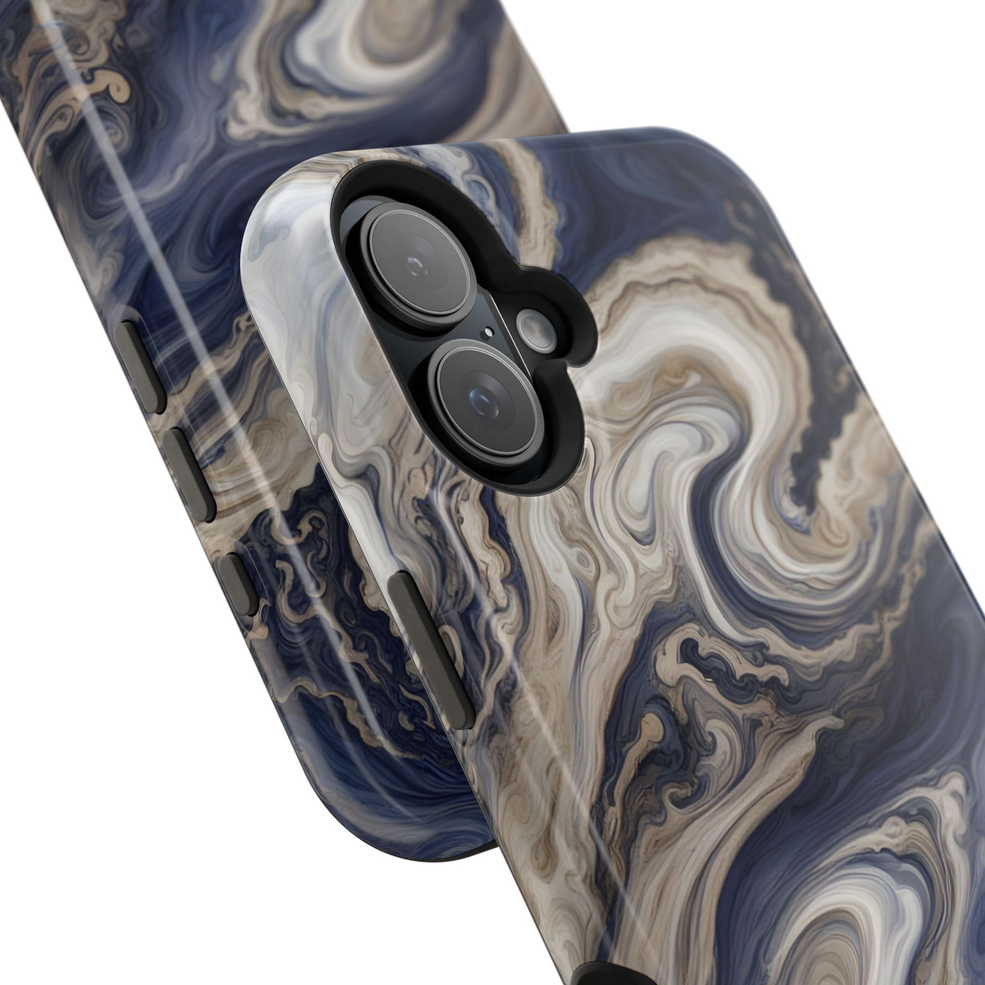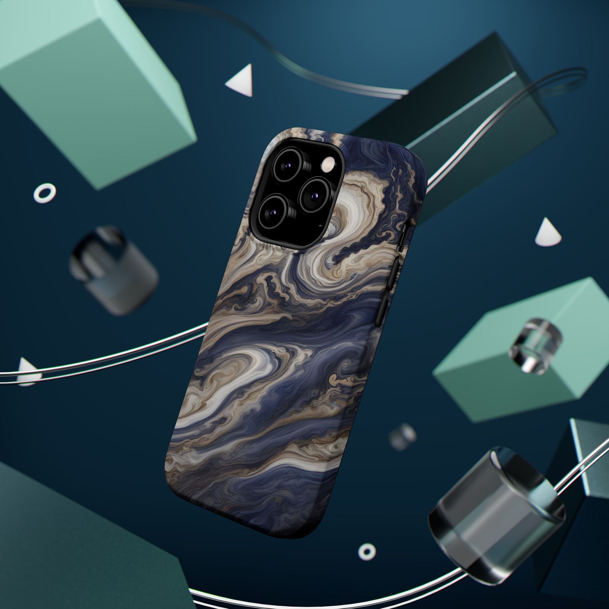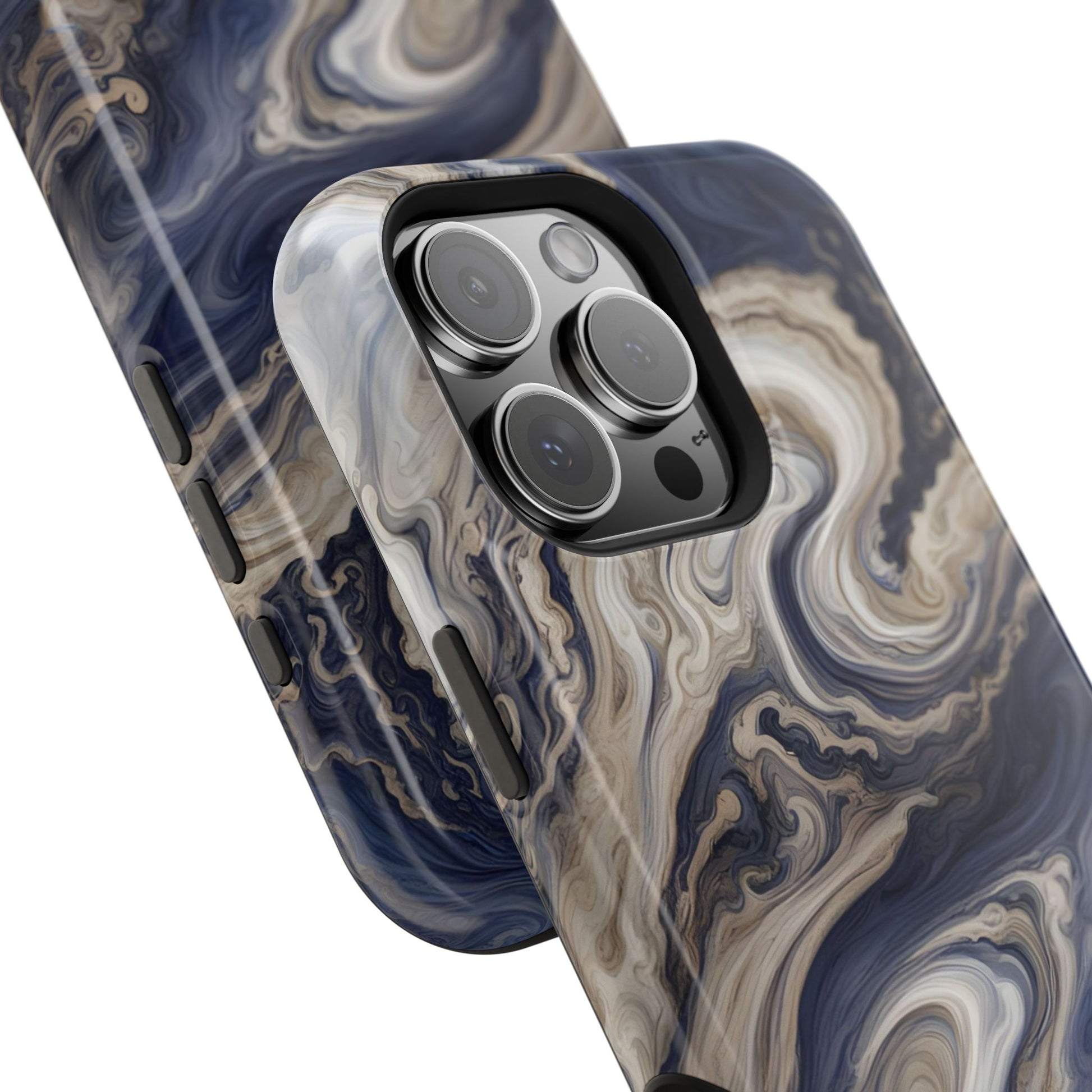 Get lost in the cosmic beauty of Midnight Dune our best one so far. This mesmerizing design combines deep, celestial blues with swirls of sandy beige and soft white, reminiscent of shifting desert dunes under a starry sky. Part of the Molten Marble collection, this case is an elegant and mysterious accessory that turns your phone into a work of art.