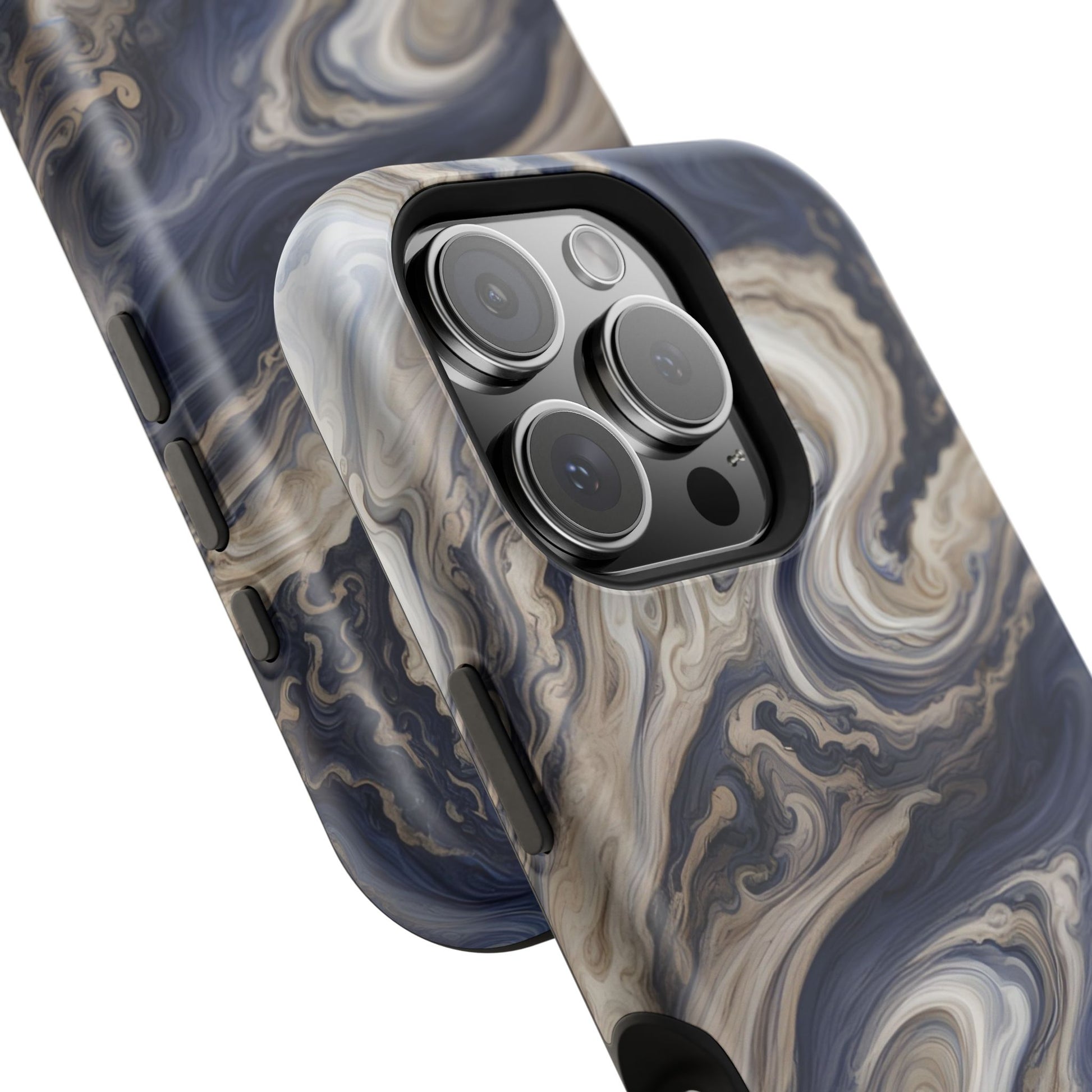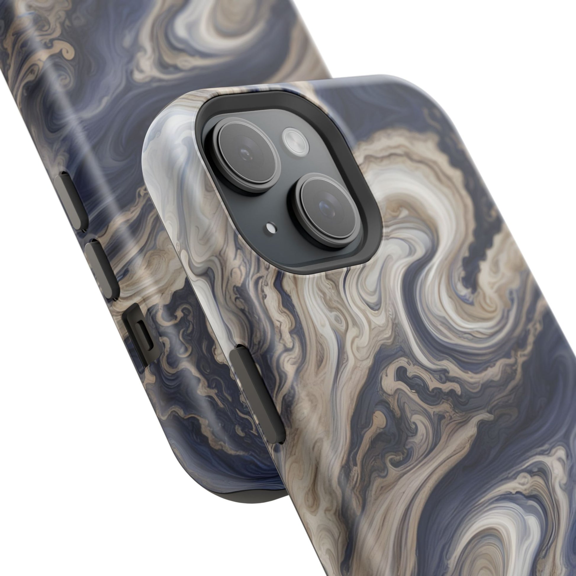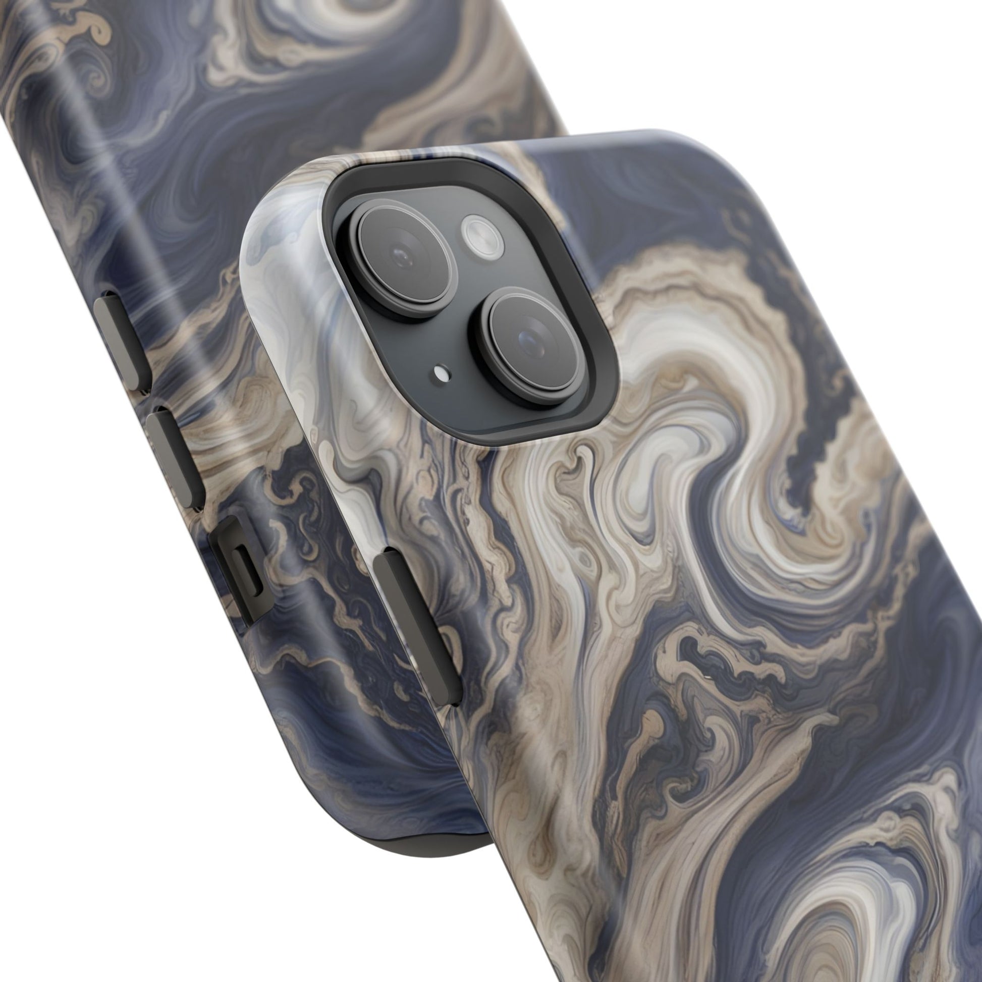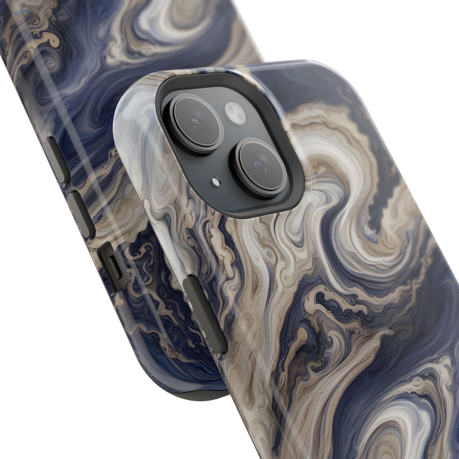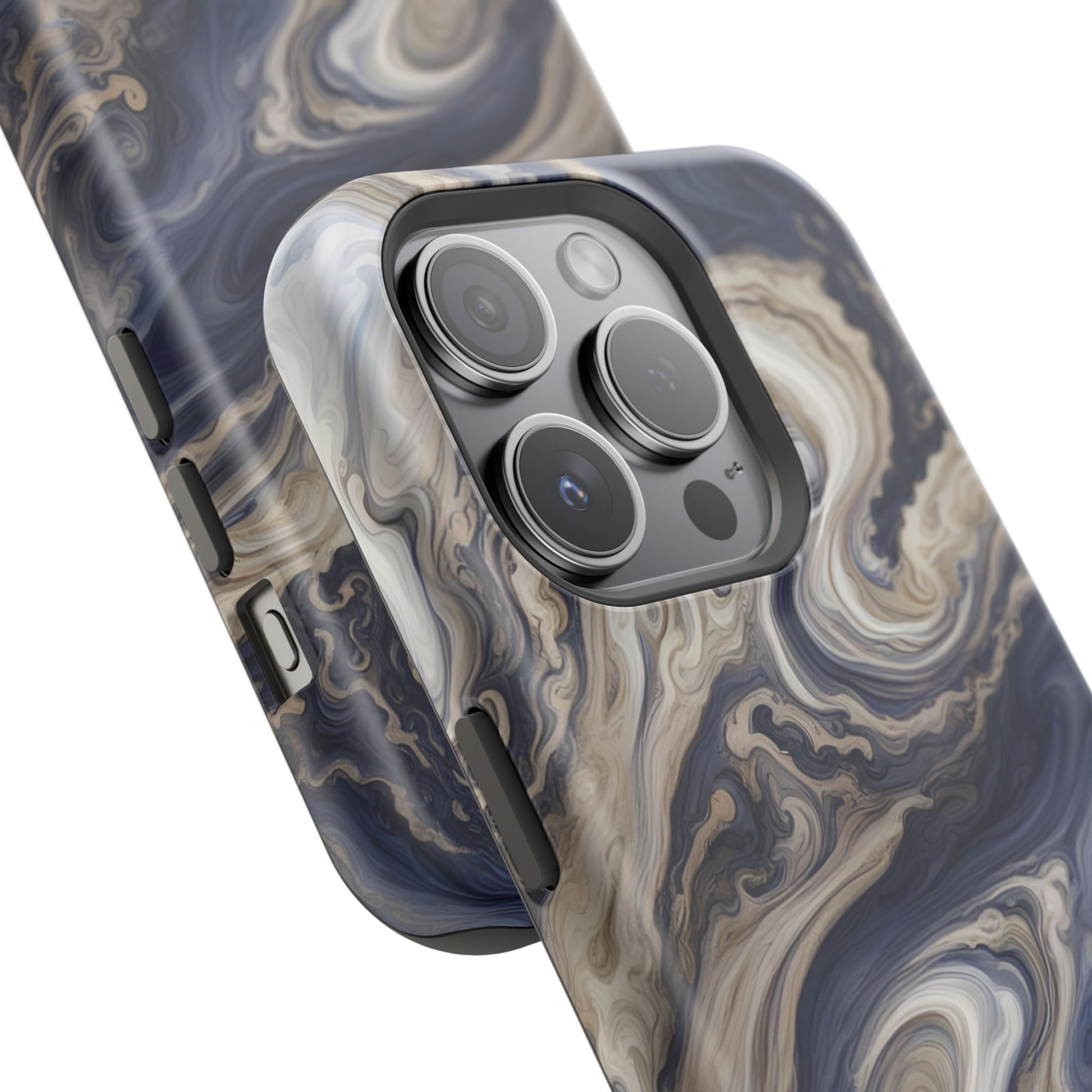Get lost in the cosmic beauty of Midnight Dune our best one so far. This mesmerizing design combines deep, celestial blues with swirls of sandy beige and soft white, reminiscent of shifting desert dunes under a starry sky. Part of the Molten Marble collection, this case is an elegant and mysterious accessory that turns your phone into a work of art.
