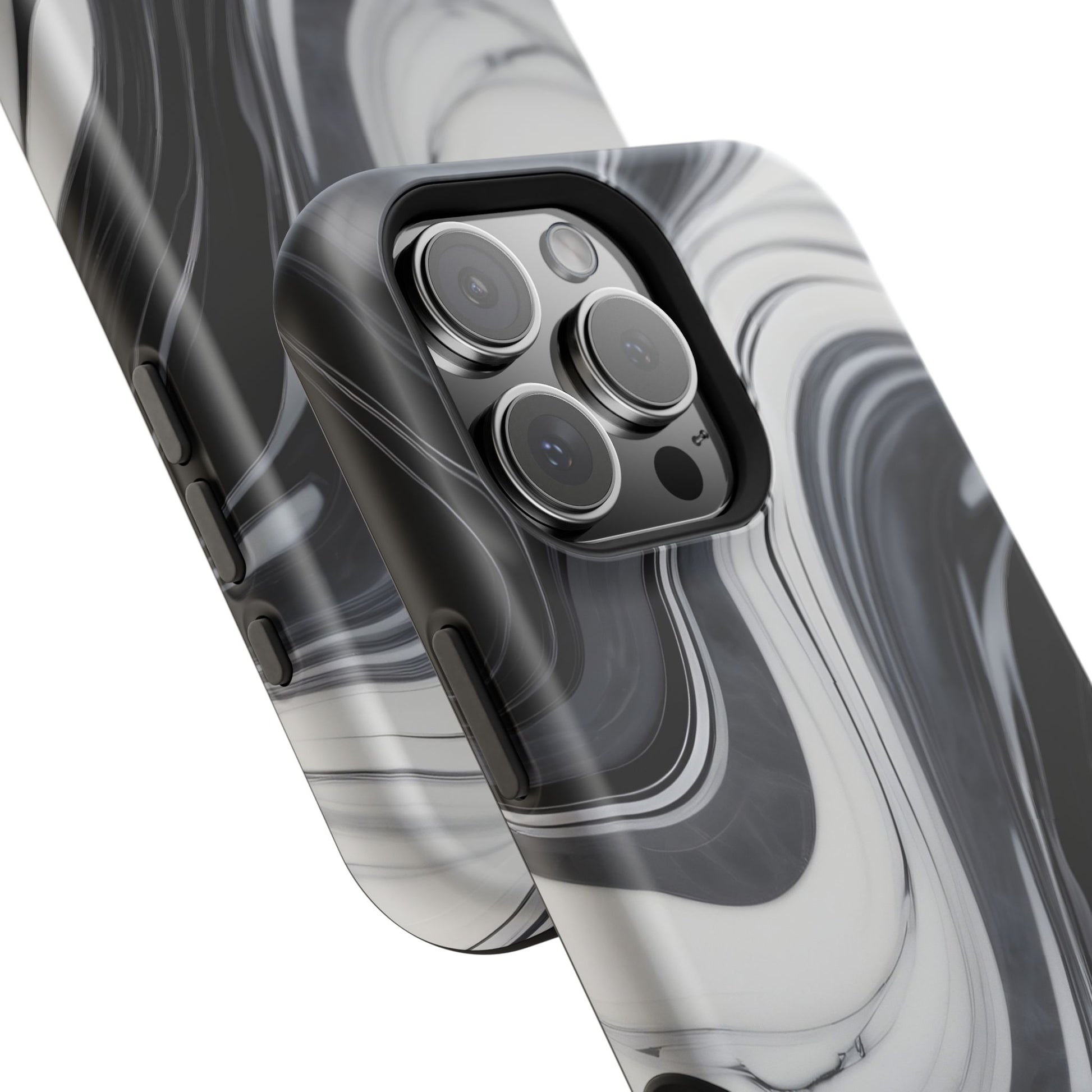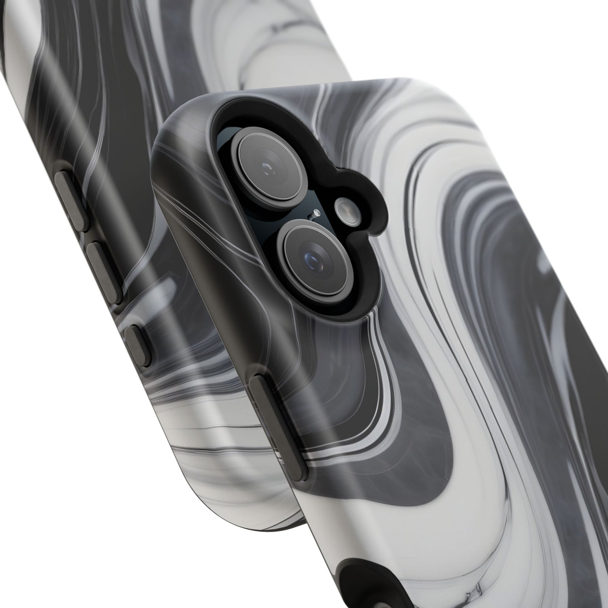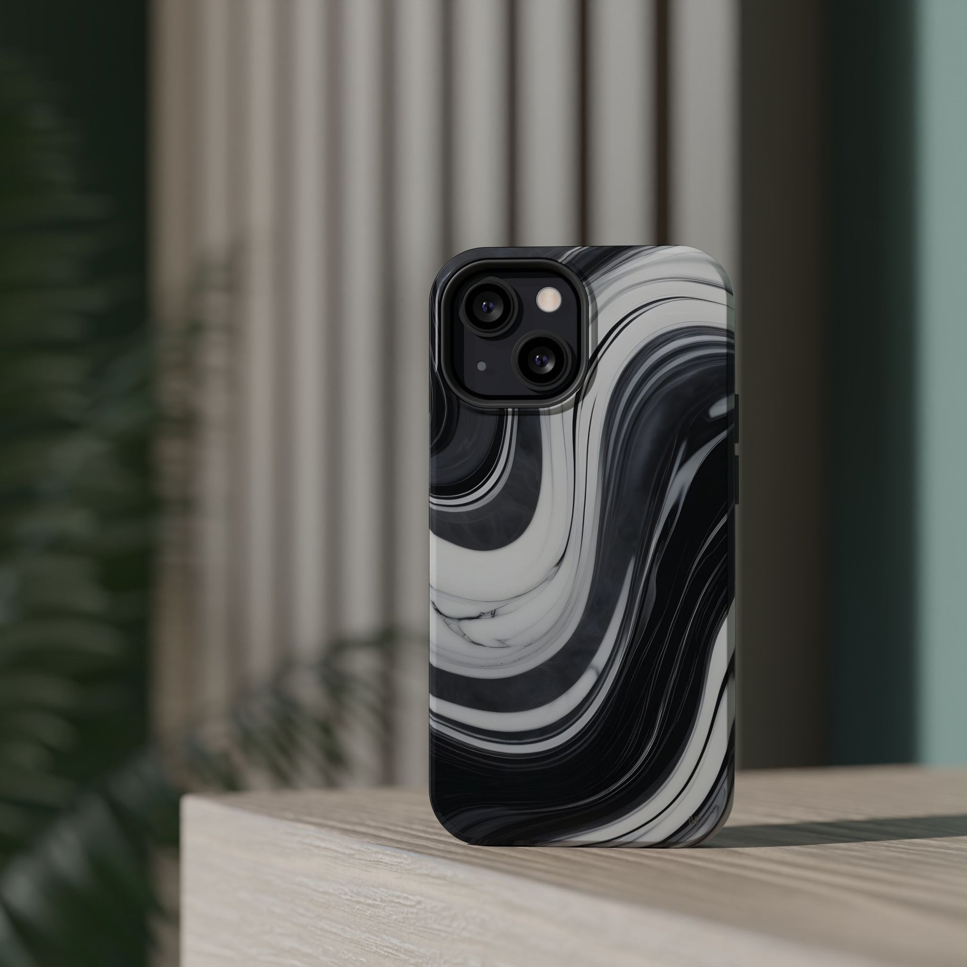 Capture the timeless power of contrast with Obsidian Flow. Part of the Molten Marble collection, this case features dramatic swirls of deep black and pristine white, mimicking the hypnotic dance of liquid stone. It's a bold, sophisticated statement of balance and modern artistry, designed for those who appreciate classic elegance with a dynamic edge.