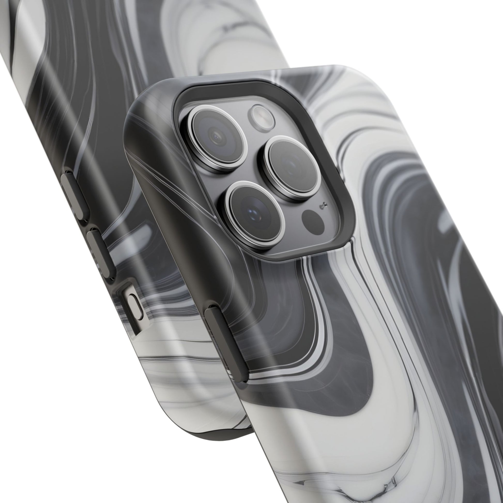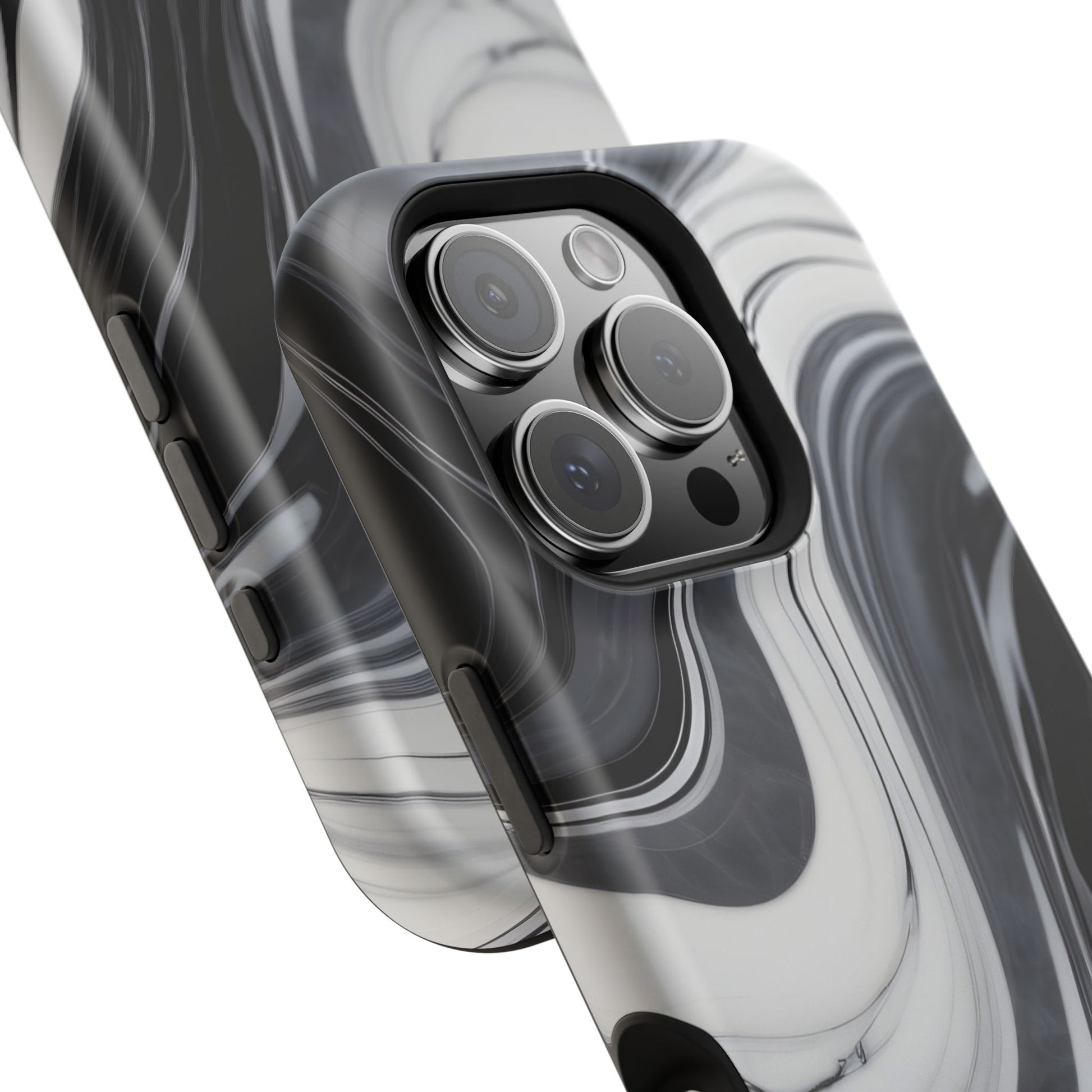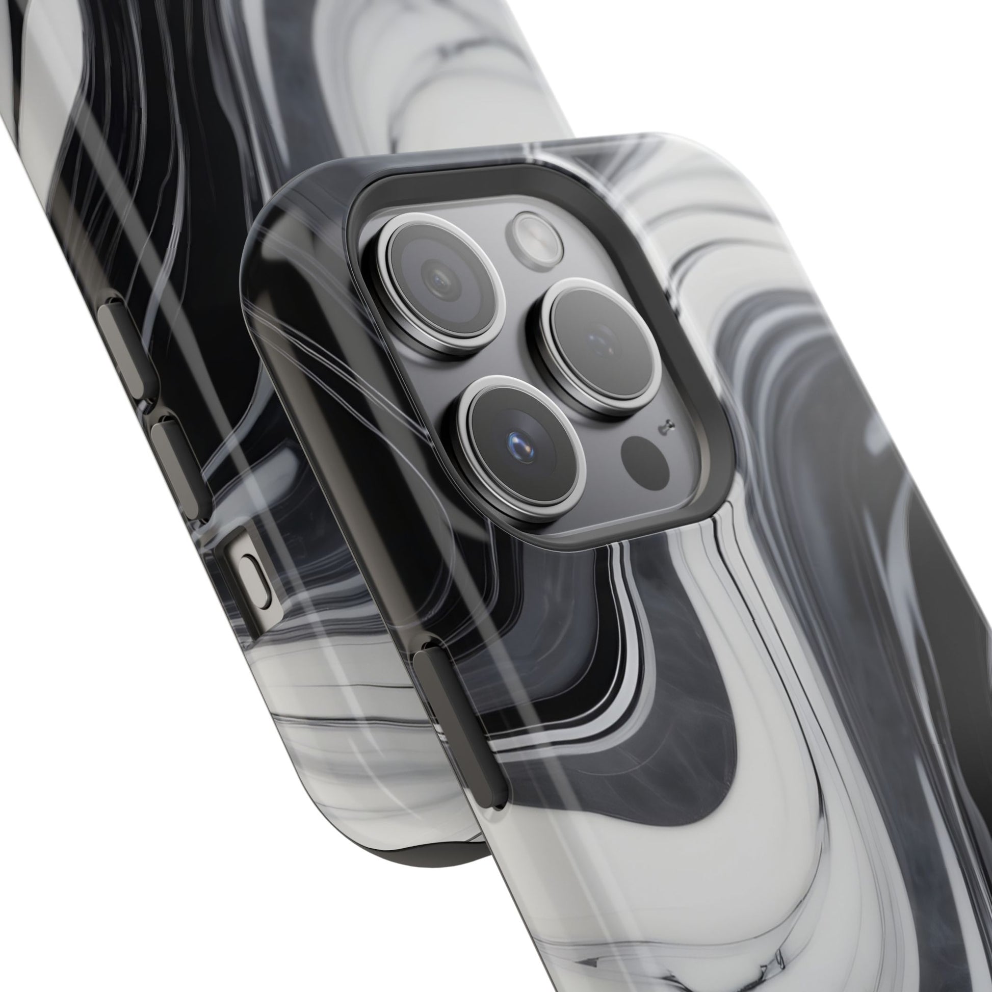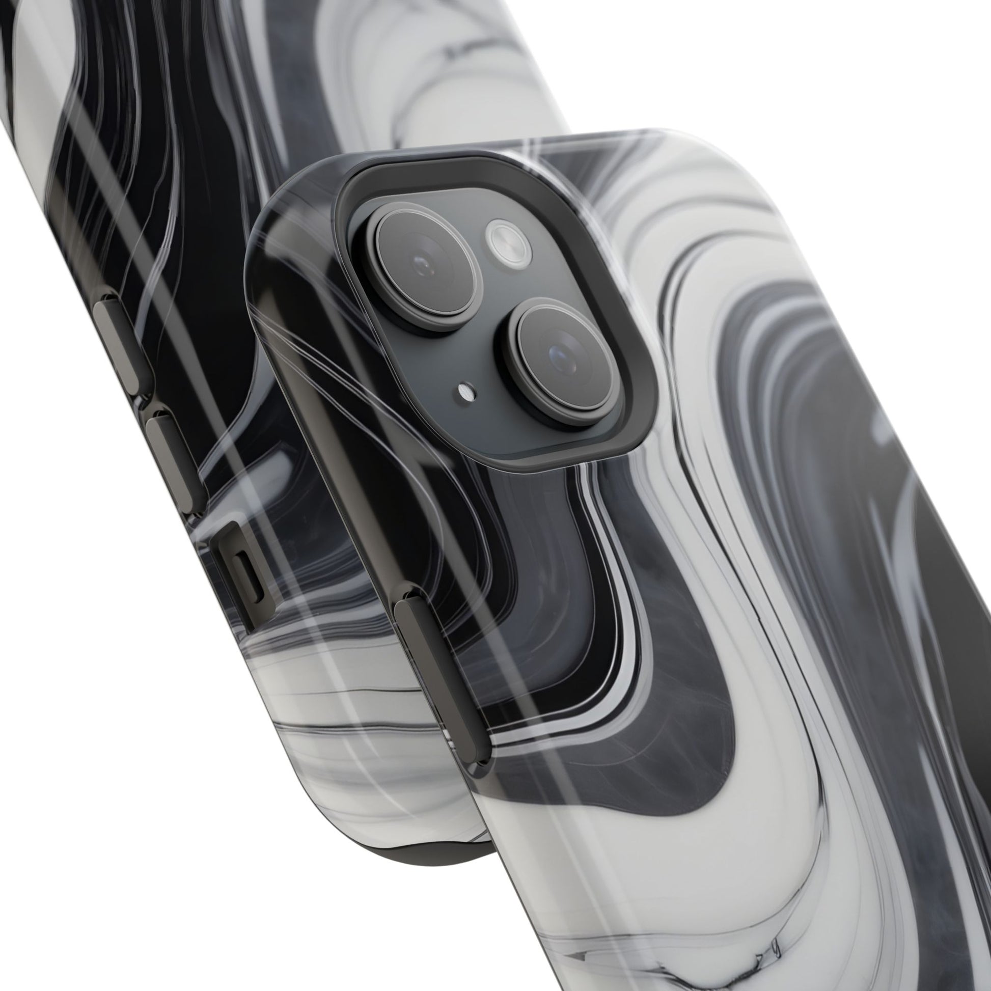Capture the timeless power of contrast with Obsidian Flow. Part of the Molten Marble collection, this case features dramatic swirls of deep black and pristine white, mimicking the hypnotic dance of liquid stone. It's a bold, sophisticated statement of balance and modern artistry, designed for those who appreciate classic elegance with a dynamic edge.