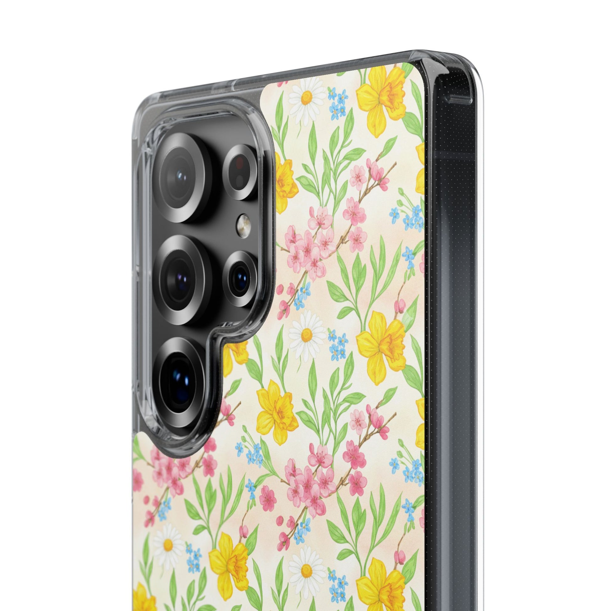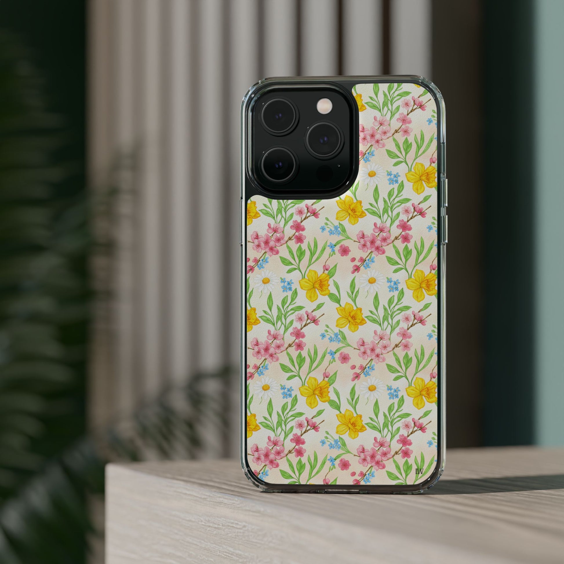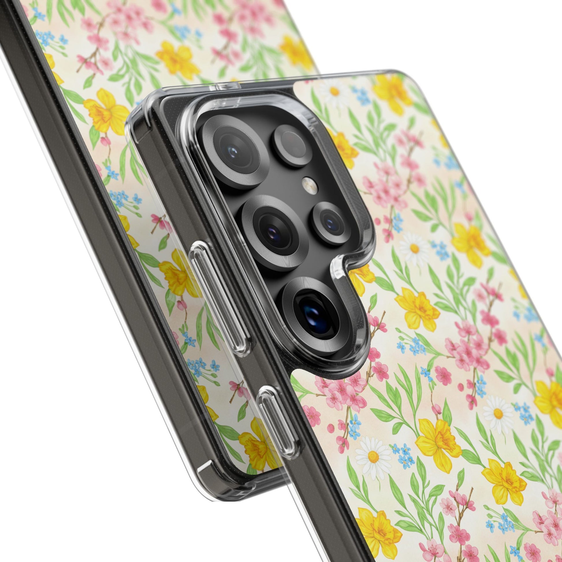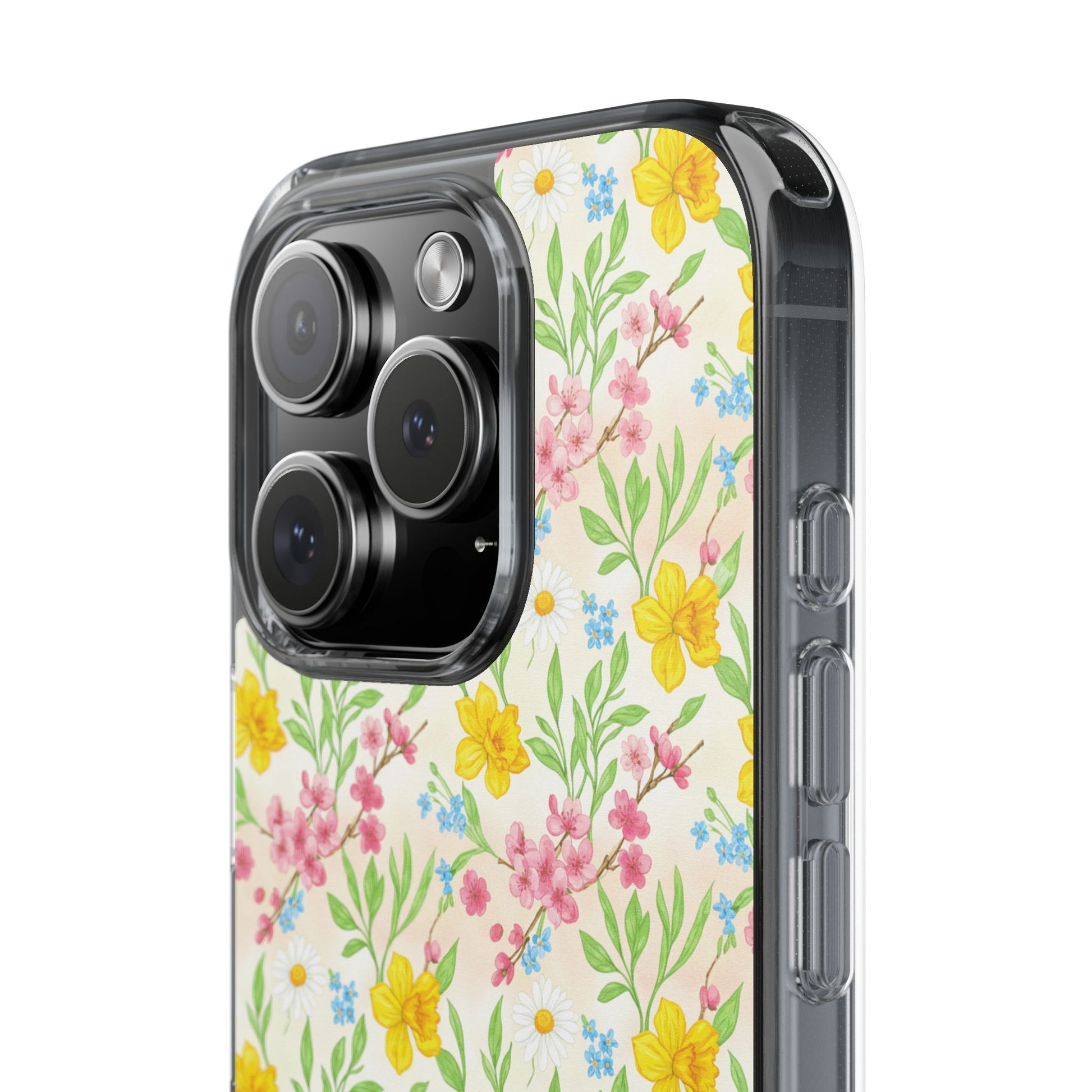 Carry the joy of a perfect spring day with you. This bright and cheerful design is bursting with sunny yellow daffodils, delicate pink cherry blossoms, sweet white daisies, and tiny blue forget-me-nots. Rendered in a soft, watercolor style, this case from the Bloom Collection is a vibrant celebration of new beginnings and nature's charm.