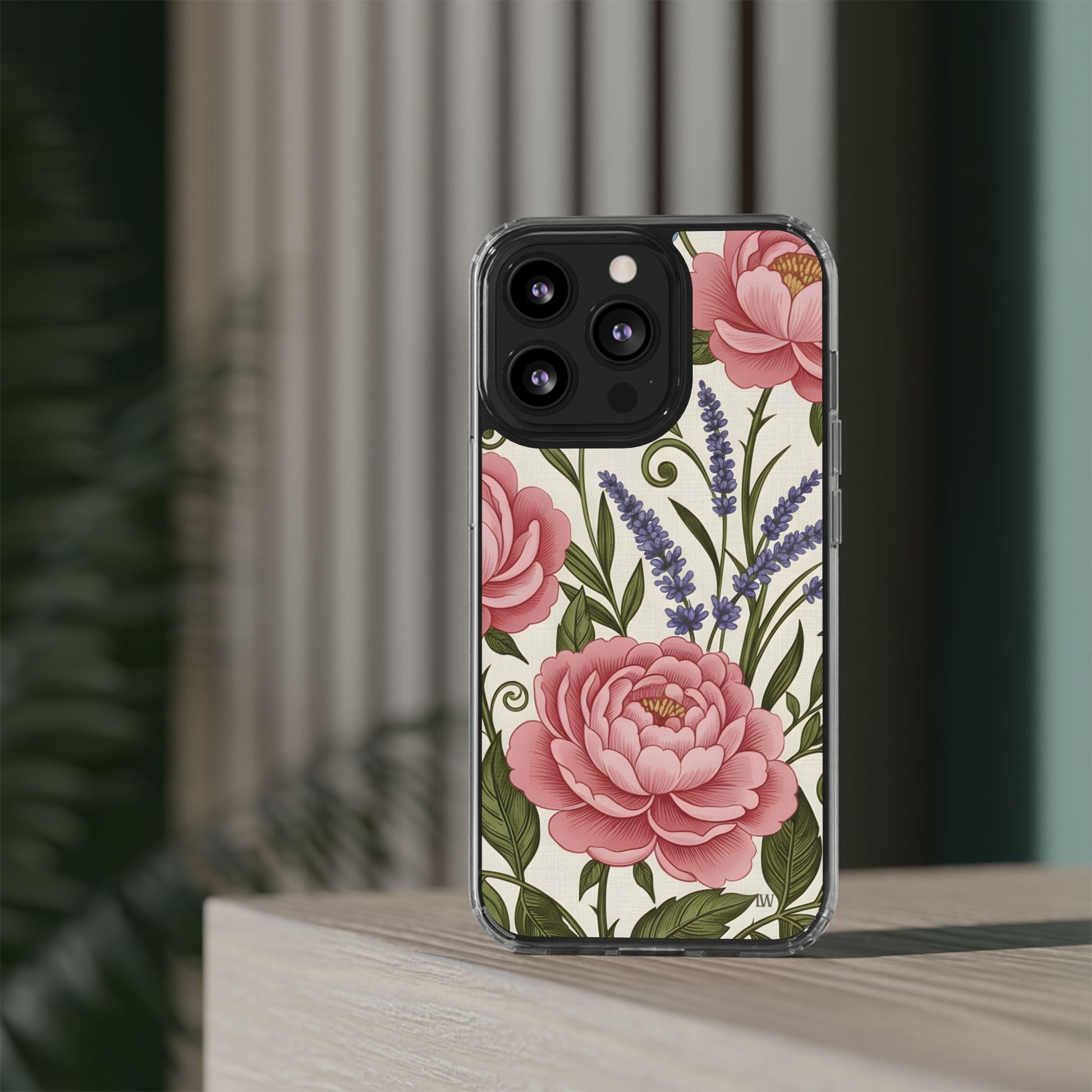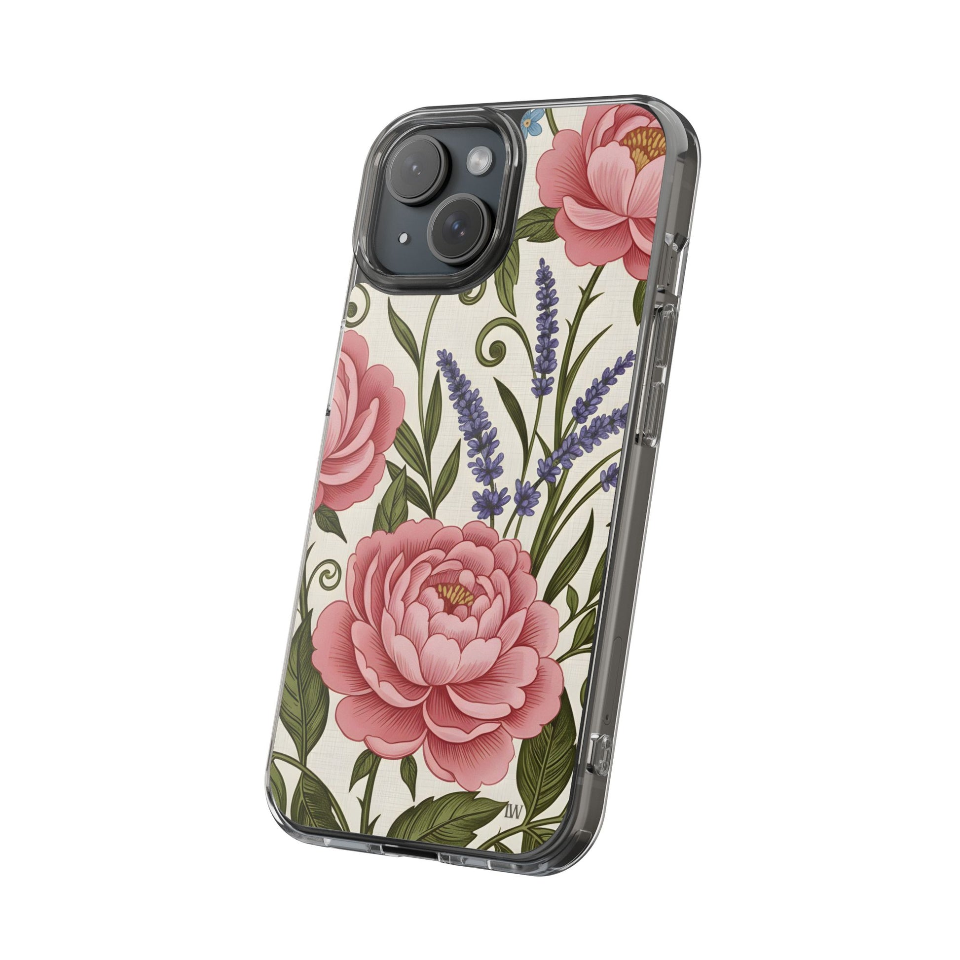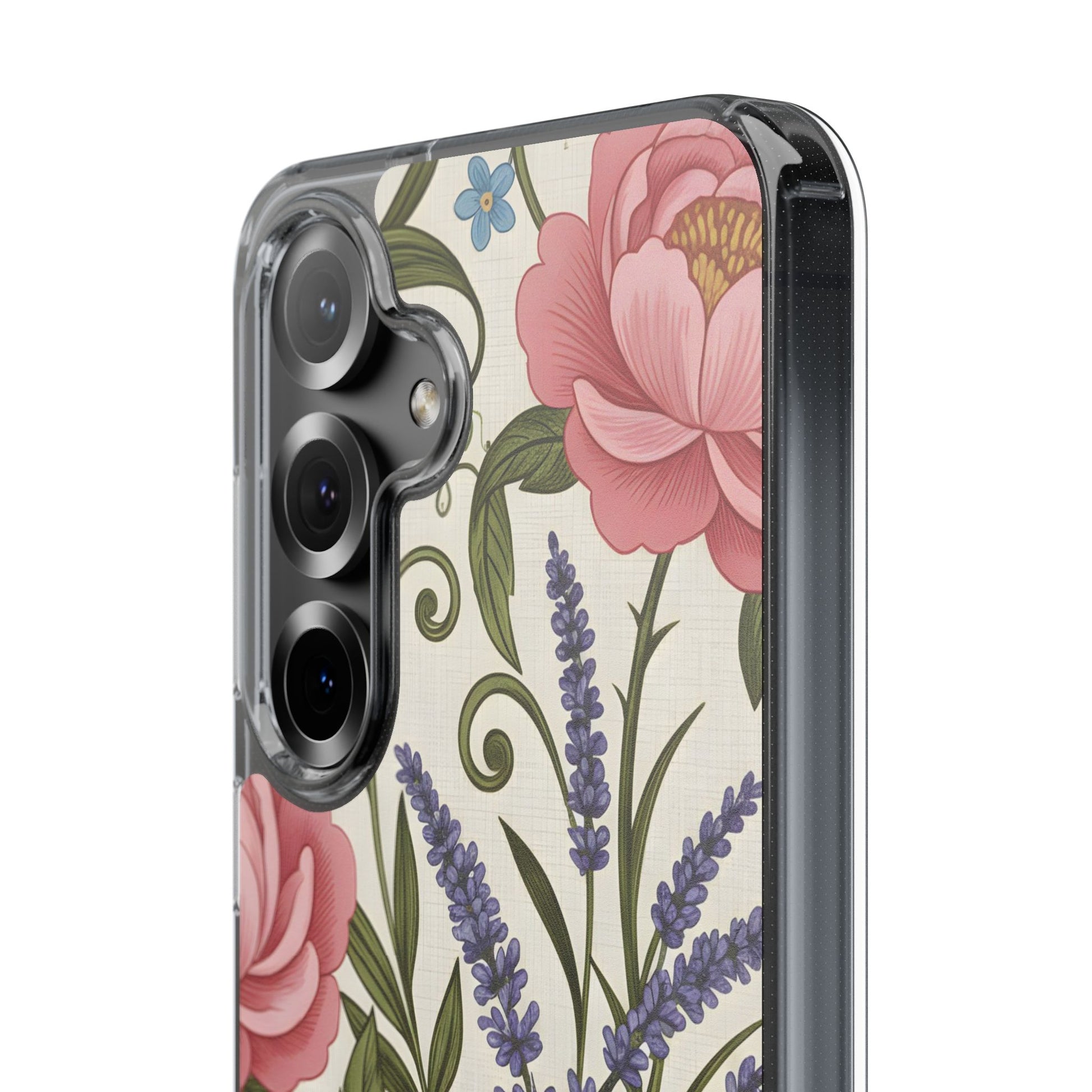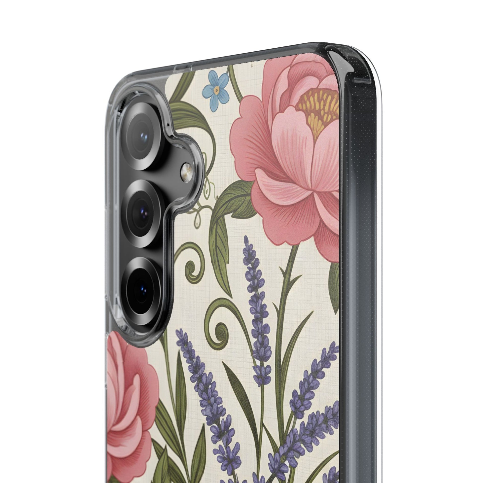 Wrap your phone in the romance of a vintage tapestry. This beautiful, intricate design showcases lush pink peonies, winding vines, and accents of lavender and blue forget-me-nots. Set against a cream-textured background, this case from the Bloom Collection has a timeless, artisanal feel that is both elegant and charming.